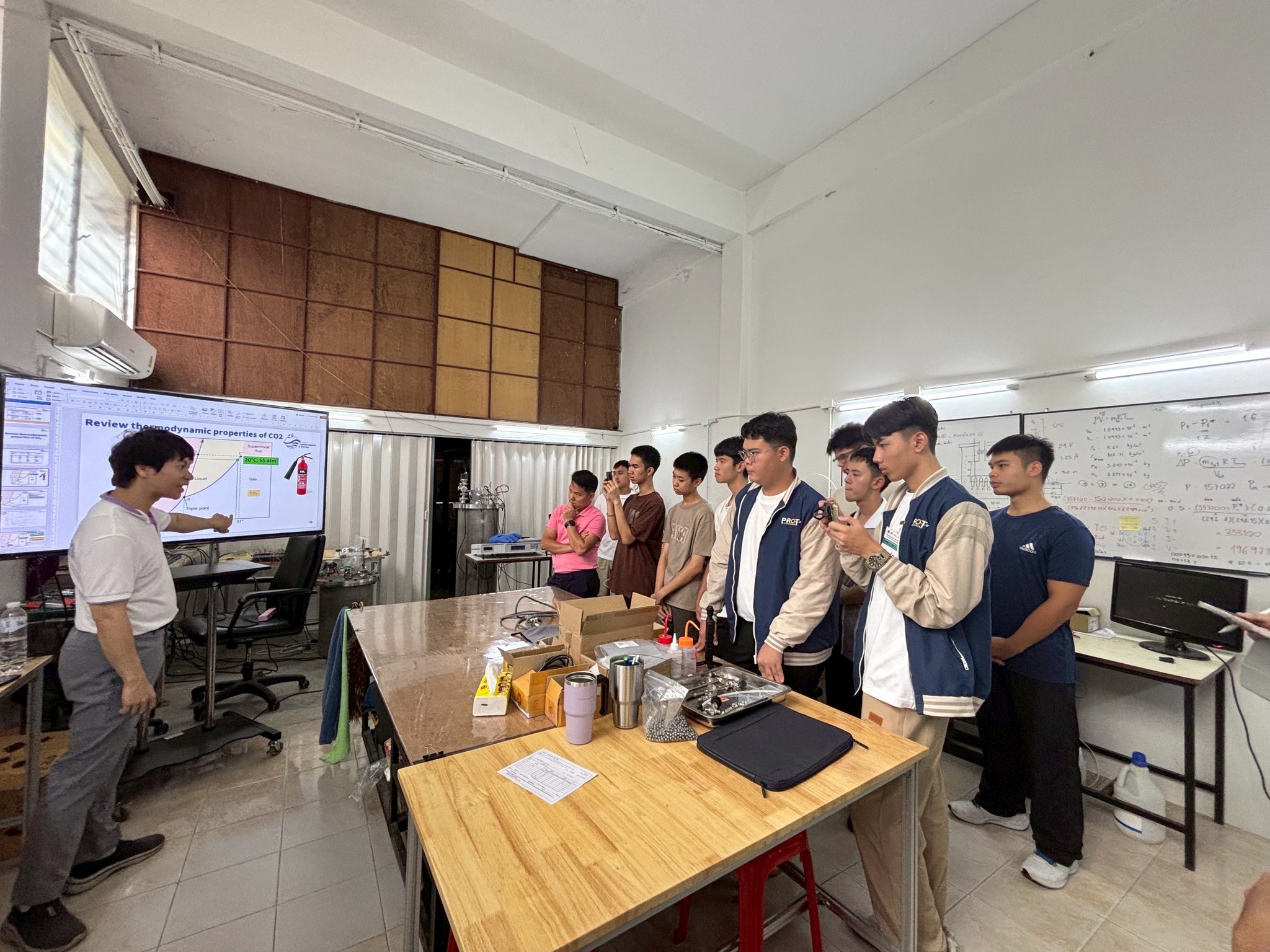 ภายในกิจกรรมยังมีการบรรยายพิเศษ ในหัวข้อ “ความสำคัญของเทคโนโลยี CCUS ในการเปลี่ยนผ่านพลังงาน” โดย รศ.ดร.สุพฤทธิ์ฯ และการบรรยายให้ความรู้เรื่องเทคโนโลยี CCUS ที่สำคัญจากหน่วยงานที่เกี่ยวข้อง ทั้ง 3 ด้าน ได้แก่ 1.การบรรยายให้ความรู้เทคโนโลยีการดักจับคาร์บอน 2.การบรรยายให้ความรู้เทคโนโลยีการใช้ประโยชน์คาร์บอน และ 3.การบรรยายให้ความรู้เทคโนโลยีการกักเก็บคาร์บอน อีกทั้งยังมีการศึกษาดูงานเครื่องต้นแบบดักจับคาร์บอนไดออกไซด์ด้วยเทคโนโลยีเอมีน ณ ศูนย์ฝึกอบรมการไฟฟ้าฝ่ายผลิตแห่งประเทศไทย อ.แม่เมาะ จ.ลำปาง และศึกษาดูงานห้องปฏิบัติการศูนย์วิจัยการดักจับและกักเก็บคาร์บอนไดออกไซด์เชียงใหม่ ณ คณะวิศวกรรมศาสตร์ มหาวิทยาลัยเชียงใหม่