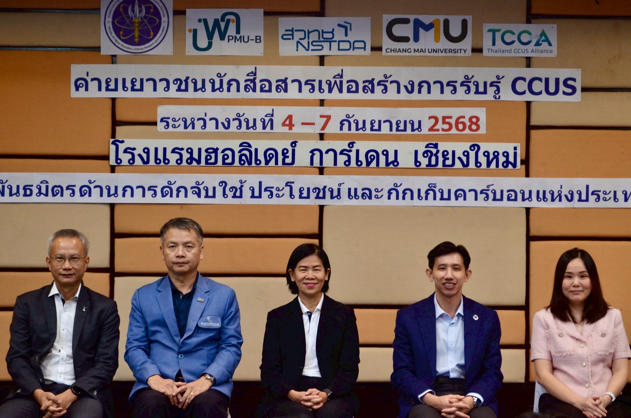 เมื่อวันที่ 4-7 กันยายน 2568 หน่วยบริหารและจัดการทุนด้านการพัฒนากำลังคน และทุนด้านการพัฒนาสถาบันอุดมศึกษา การวิจัยและการสร้างนวัตกรรม (บพค.) กระทรวงการอุดมศึกษา วิทยาศาสตร์ วิจัยและนวัตกรรม (อว.) โดย ดร.ณิรวัฒน์ ธรรมจักร์ ผู้อำนวยการ บพค. มอบหมายให้ นางสาววิภาวี เจียมใจ นักวิเคราะห์โครงการ บพค. เข้าร่วมกิจกรรม “ค่ายเยาวชนนักสื่อสารเพื่อสร้างการรับรู้ CCUS” ณ จังหวัดเชียงใหม่และจังหวัดลำปาง ซึ่งเป็นกิจกรรมที่จัดขึ้นภายใต้โครงการภาคีเครือข่ายพันธมิตร ด้านการดักจับ ใช้ประโยชน์ และกักเก็บคาร์บอนแห่งประเทศไทย (TCCA) เพื่อการขับเคลื่อนเทคโนโลยีด้าน CCUS ของประเทศ และผลักดันให้เกิดการนำไปใช้จริงในภาคอุตสาหกรรม เพื่อเป้าหมายความเป็นกลางทางคาร์บอนของประเทศไทย ภายใต้การสนับสนุนทุนวิจัยของ บพค. ผ่านกองทุนส่งเสริมวิทยาศาสตร์ วิจัยและนวัตกรรม ในปีงบประมาณ 2568 โดยการจัดกิจกรรมในครั้งนี้มีวัตถุประสงค์เพื่อส่งเสริมการสร้างบุคลากรรุ่นใหม่ให้มีความรู้ความเข้าใจในเทคโนโลยี CCUS และมีทักษะการสื่อสารที่สามารถขับเคลื่อนสังคมไทยไปสู่เป้าหมายความเป็นกลางทางคาร์บอน (Carbon Neutrality) และการปล่อยก๊าซเรือนกระจกสุทธิเป็นศูนย์ (Net Zero) ซึ่งมีเยาวชนระดับมัธยมศึกษาตอนปลายและครูผู้สอนที่ผ่านการคัดเลือกมาจากทั่วประเทศ เข้าร่วมกิจกรรมกว่า 40 คน