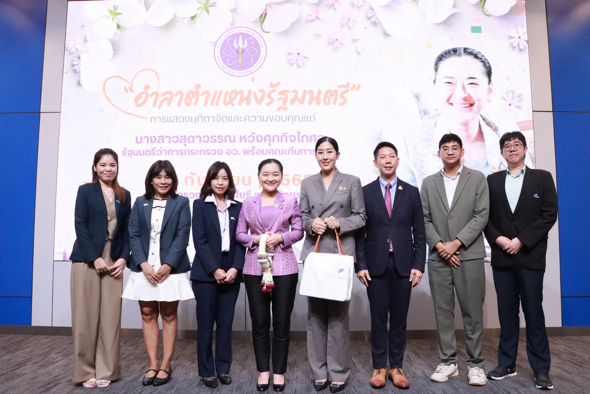 เมื่อวันที่ 12 สิงหาคม 2568 นางสาวสุดาวรรณ หวังศุภกิจโกศล รัฐมนตรีว่าการกระทรวงการอุดมศึกษา วิทยาศาสตร์ วิจัยและนวัตกรรม พร้อมด้วย นางสาวพลอย ธนิกุล ผู้ช่วย รมว.กระทรวง อว. และ นายวิเชียร สุขสร้อย เลขานุการ รมว.กระทรวง อว. ร่วมพิธีอำลาตำแหน่ง โดยบรรยากาศเป็นไปอย่างอบอุ่น ซึ่งมีคณะผู้บริหารระดับสูง นำโดย ศาสตราจารย์ ดร.ศุภชัย ปทุมนากุล ปลัดกระทรวง อว. และผู้บริหารหน่วยงานในสังกัด พร้อมด้วย คุณธนวรรณ ศรีทอง ผู้อำนวยการฝ่ายพัฒนากำลังคนสมรรถนะสูงเชิงยุทธศาสตร์ หน่วยบริหารและจัดการทุนด้านการพัฒนากำลังคน และทุนด้านการพัฒนาสถาบันอุดมศึกษา การวิจัยและการสร้างนวัตกรรม (บพค.) คุณเยาวดี รุ่งเรือง ผู้อำนวยการฝ่ายพัฒนางานวิจัยขั้นแนวหน้าและเทคโนโลยีขั้นแนวหน้า บพค. และเจ้าหน้าที่จากทุกหน่วยงานกระทรวง อว. เข้าร่วมอย่างคับคั่ง ณ กระทรวงการอุดมศึกษา วิทยาศาสตร์ วิจัยและนวัตกรรม (อว.)