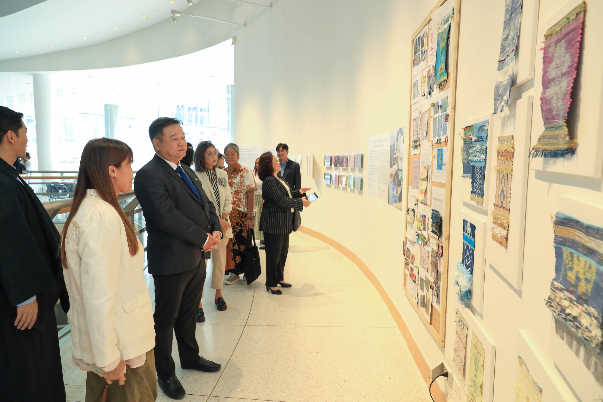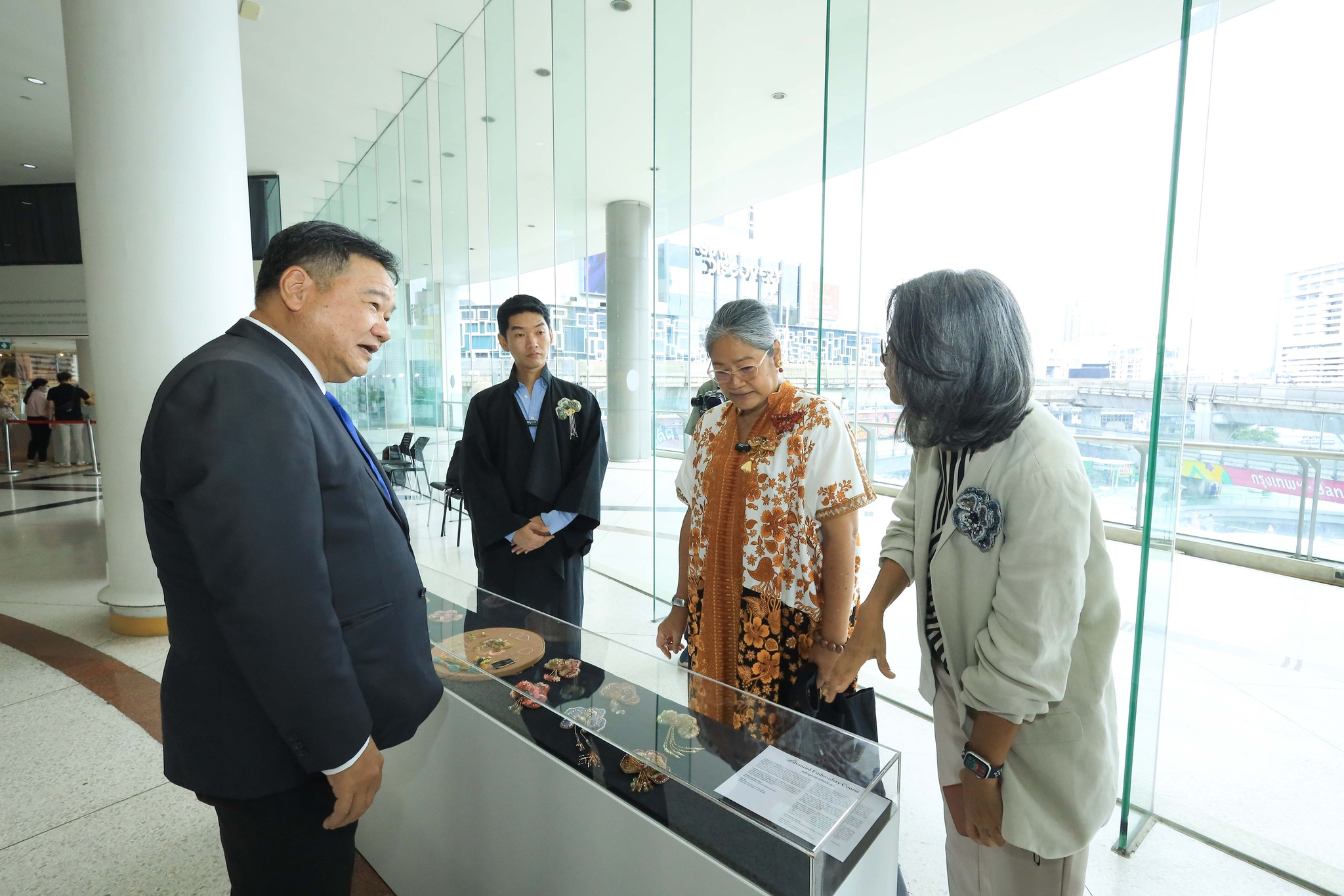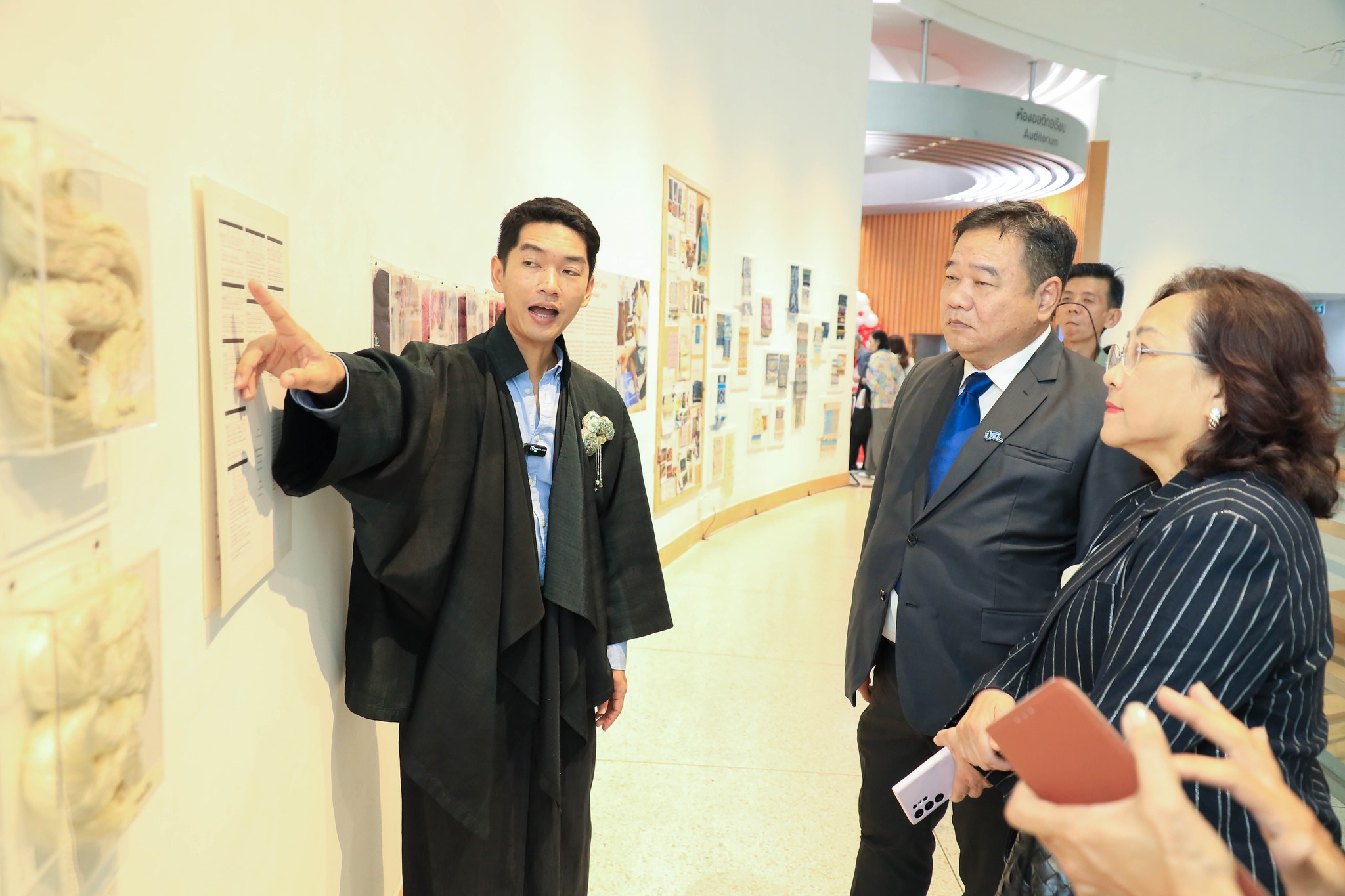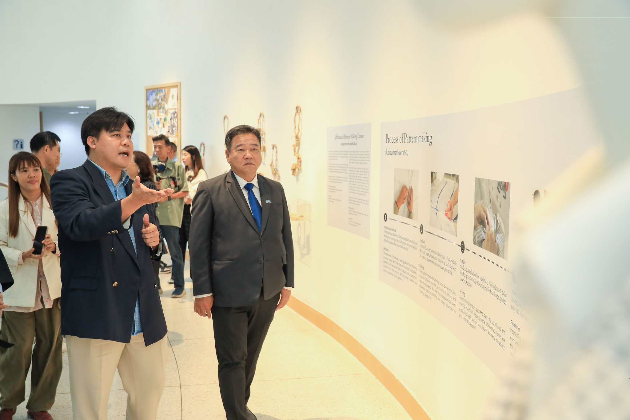 ภายในงาน รศ.ดร.พิพัฒน์ฯ ได้เดินชมนิทรรศการแสดงผลงานของผู้ผ่านการอบรมจากหลักสูตรของโครงการร่วมกับ ดร.สิริกร มณีรินทร์ นายกสภาสถาบันวิทยาลัยชุมชน ผศ.ดร.วิทวัน จันทร คณบดีคณะศิลปกรรมศาสตร์ มหาวิทยาลัยธรรมศาสตร์ และ ผศ.ดร.วุฒิไกร ศิริผล หัวหน้าโครงการ พร้อมด้วยทีมนักวิจัย ซึ่งได้ร่วมกันถ่ายทอดกระบวนการเรียนรู้จากครูช่างผู้เชี่ยวชาญ สู่การพัฒนาหลักสูตรฝึกอบรมหัตถศิลป์เชิงนวัตกรรมที่สามารถต่อยอดสู่เชิงพาณิชย์ได้จริง