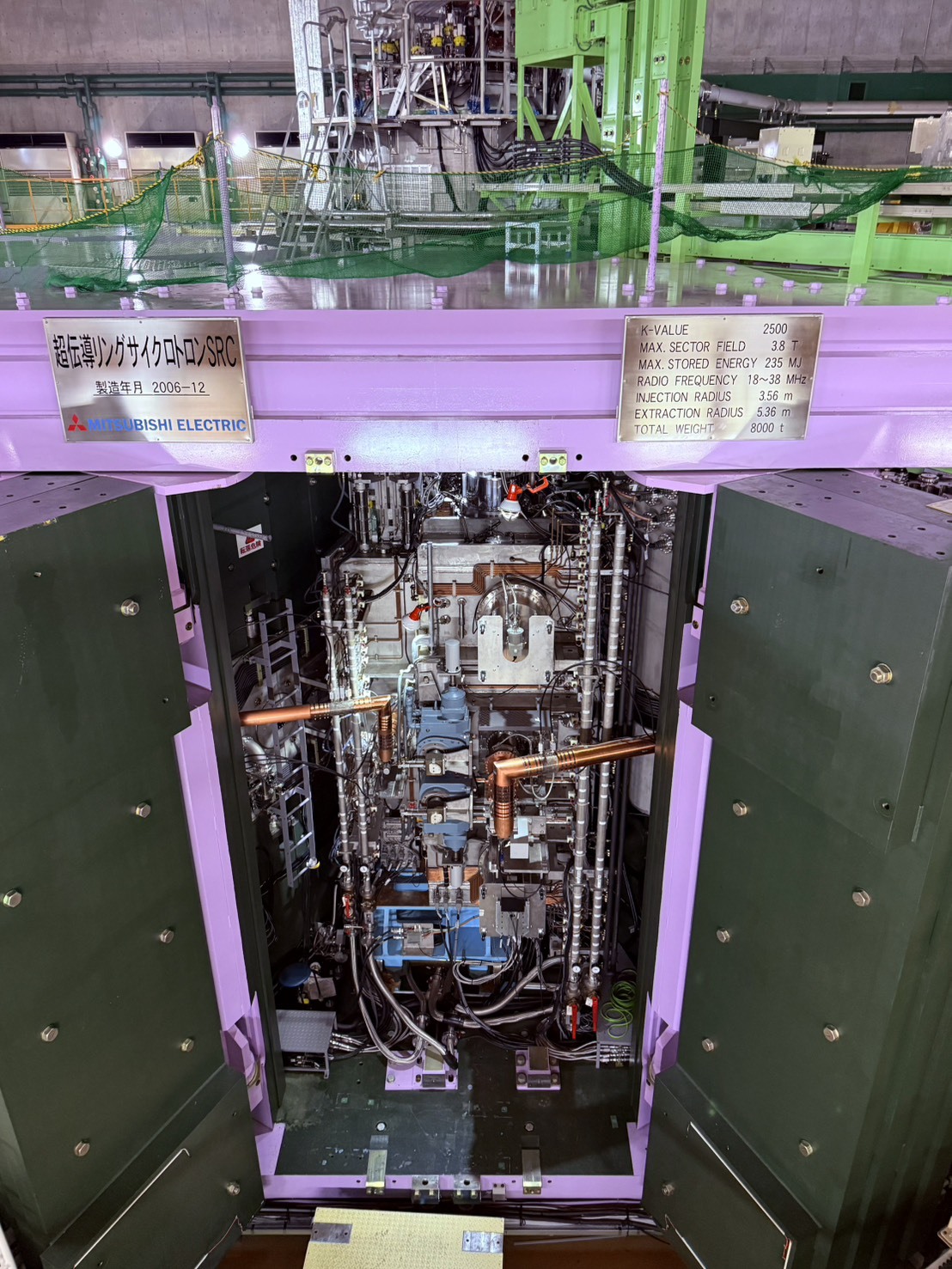 คณะฯ ได้เดินทางไปยัง ศูนย์นิชินะฯ สถาบัน RIKEN (ญี่ปุ่น) ศูนย์กลางการวิจัยระดับโลกที่ใช้เครื่องเร่งอนุภาคเพื่อศึกษาวิจัยพื้นฐานของสสาร การกำเนิดของธาตุ และความเป็นไปได้ในการแปรรูปธาตุ (Element Transmutation) การเยี่ยมชมครั้งนี้ได้รับเกียรติจาก Dr. Isao Watanabe นักวิทยาศาสตร์วิจัยอาวุโส สถาบันวิจัย RIKEN นำชมการดำเนินงานของโรงงานผลิตลำไอโซโทปรังสี (RI Beam Factory หรือ RIBF) ซึ่งเป็นเครื่องเร่งอนุภาคเพื่อการวิจัยทางนิวเคลียร์ โดยผสมผสานเทคโนโลยีเครื่องเร่งไอออนหนักที่มีอยู่เดิมกับชุดเครื่องเร่งพลังงานสูงรุ่นใหม่ล่าสุด เป้าหมายคือการผลิต “ลำแสงไอออนหนัก” ที่มีความเข้มสูงที่สุดในโลก และ “ลำแสงไอโซโทปรังสี (RI beams)” ที่มีพลังงานสูง ด้วยการใช้ชุดเครื่องเร่งใหม่ (SRC) ร่วมกับเครื่องคัดแยก BigRIPS ทำให้ RIBF สามารถสร้างลำแสงพลังงานสูงเพื่อขยายขอบเขตการวิจัยนิวเคลียร์และค้นพบไอโซโทปใหม่ ๆ ในแผนภูมินิวเคลียร์