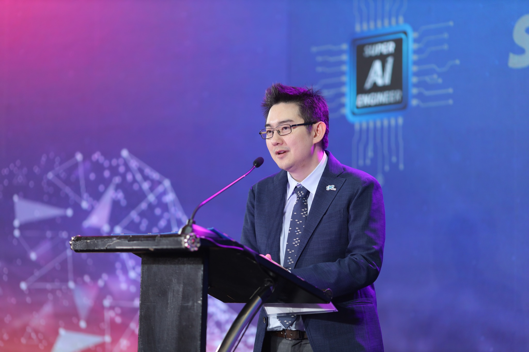 จากนั้น ดร.เทพชัย ทรัพย์นิธิ นายกสมาคมปัญญาประดิษฐ์ประเทศไทย ได้แสดงให้เห็นถึงความสำเร็จของสมาคมผ่านโครงการ Super AI Engineer ในการสร้างระบบนิเวศของการพัฒนากำลังคนด้าน AI โดยเน้นการพัฒนาทักษะทั้งในระดับการใช้เครื่องมือ การพัฒนาโมเดล และการสร้างองค์ความรู้ใหม่ เพื่อให้ประเทศไทยสามารถก้าวสู่ยุค AI ได้อย่างเต็มศักยภาพ