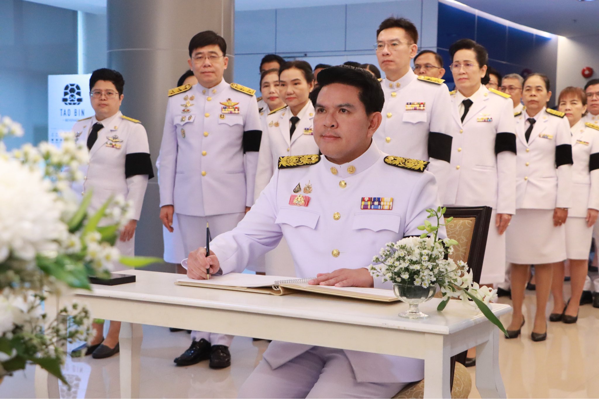 ต่อมารัฐมนตรีได้นำคณะผู้บริหาร ข้าราชการและเจ้าหน้าที่ อว. ร่วมพิธีถวายราชสักการะเบื้องหน้าพระบรมฉายาลักษณ์ฯ รัฐมนตรี อ่านประกาศถวายความอาลัย และเทิดทูนพระราชกรณียกิจ พระเกียรติคุณ ที่ทรงมีต่อประเทศและอาณาราษฎร จากนั้นได้ร่วมกันลงนามถวายความอาลัย ณ บริเวณด้านหน้าห้องแถลงข่าวฯ เพื่อน้อมรำลึกในพระมหากรุณาธิคุณที่ทรงมีต่อการศึกษา วิทยาศาสตร์ และการพัฒนาประเทศตลอดระยะเวลาอันยาวนานกว่า 70 ปี