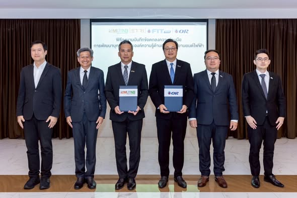 พิธีลงนามดังกล่าวมี รศ.ดร.กัมปนาท เทียนน้อย ผู้อำนวยการสำนักวิจัยวิทยาศาสตร์และเทคโนโลยี มจพ. และคุณรชา อุทัยจันทร์ รองประธานเจ้าหน้าที่บริหารด้านธุรกิจหล่อลื่น บริษัท ปตท. น้ำมันและการค้าปลีก จำกัด (มหาชน) เป็นผู้ลงนาม โดยกรอบความร่วมมือมุ่งเน้นการพัฒนาหลักสูตร การฝึกอบรม และการวิจัยร่วมด้านเทคโนโลยียานยนต์ไฟฟ้า (EV) การยกระดับทักษะบุคลากร วิศวกร และช่างเทคนิคให้รองรับเทคโนโลยี EV ตลอดจนการสนับสนุนองค์ความรู้ เทคโนโลยี และการแลกเปลี่ยนความเชี่ยวชาญระหว่างกัน เพื่อให้บุคลากรของศูนย์บริการยานยนต์ในเครือ Fit Auto สามารถให้บริการตรวจสอบและซ่อมบำรุงยานยนต์ไฟฟ้าได้อย่างมีมาตรฐาน ทันสมัย และสอดคล้องกับความต้องการการใช้รถ EV ที่เพิ่มขึ้นในประเทศไทย