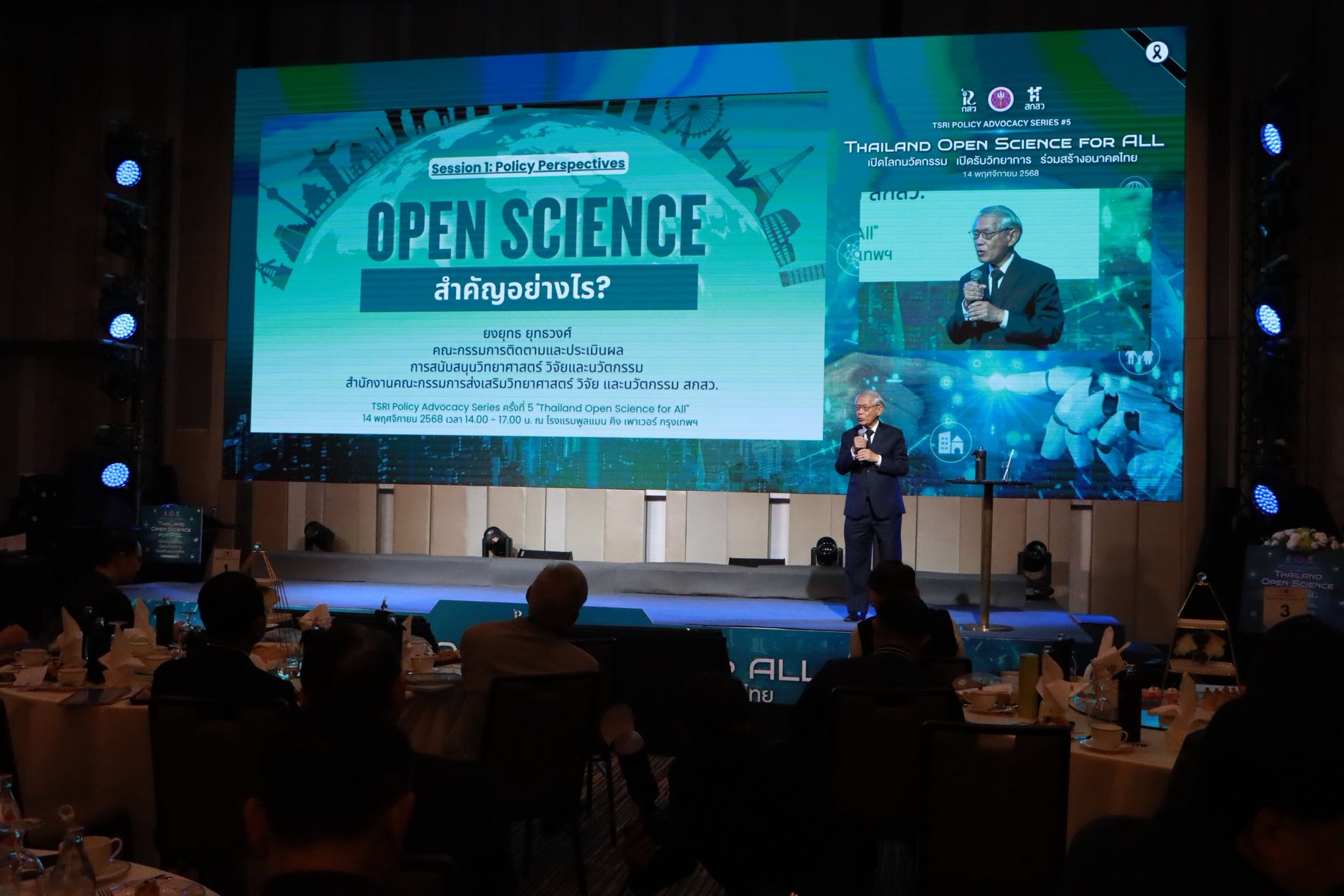 ศ.(เกียรติคุณ) ดร.นายแพทย์สิริฤกษ์ ทรงศิวิไล ประธานกรรมการส่งเสริมวิทยาศาสตร์ วิจัยและนวัตกรรม (กสว.) กล่าวว่า Open Science ไม่ใช่เพียงเรื่องของเทคโนโลยีหรือการเปิดเผยข้อมูล แต่คือการเปลี่ยนวัฒนธรรมการสร้างและใช้ความรู้ของทั้งสังคม ให้ความรู้ที่เกิดจากภาษีของประชาชน กลับคืนสู่ประชาชนในรูปของโอกาสใหม่ทางเศรษฐกิจ คุณภาพชีวิตที่ดีขึ้นของสังคม และการใช้ทรัพยากรอย่างยั่งยืนต่อสิ่งแวดล้อม