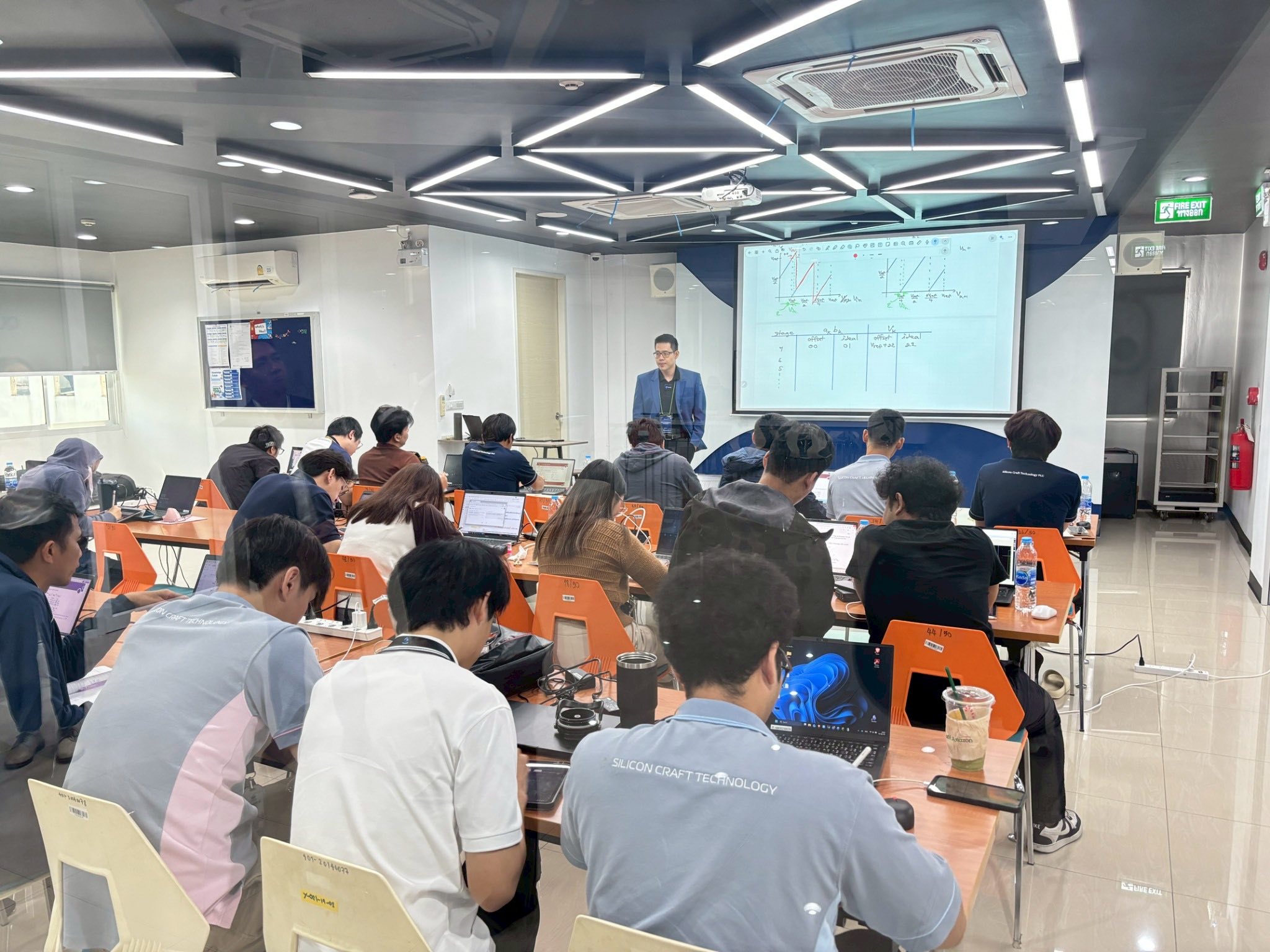 นอกจากนี้ ดร.บดินทร์ เกษมเศรษฐ์ กรรมการบริษัทฯ ได้นำคณะฯ เยี่ยมชมการอบรมกระบวนการออกแบบวงจรรวม (IC design) ซึ่งมีผู้เข้าร่วมการอบรมทั้งวิศวกร อาจารย์มหาวิทยาลัย และนักศึกษาจากหลากหลายสถาบัน คาดว่าจะสามารถยกระดับทักษะ (Upskill/Reskill) บุคลากรได้กว่า 100 คน ประกอบด้วย วิศวกรในบริษัท ซิลิคอน คราฟท์ เทคโนโลยี จำกัด (มหาชน) รวมถึงนักศึกษาจากมหาวิทยาลัยสงขลานครินทร์ ซึ่งมีโอกาสในการเตรียมความพร้อมสู่การจ้างงานในอนาคต พร้อมทั้งมีการหารือถึงสถานการณ์ความต้องการกำลังคนทักษะสูงในอุตสาหกรรมเซมิคอนดักเตอร์ และแนวทางการพัฒนาหลักสูตรให้สอดคล้องกับความต้องการของภาคอุตสาหกรรม
