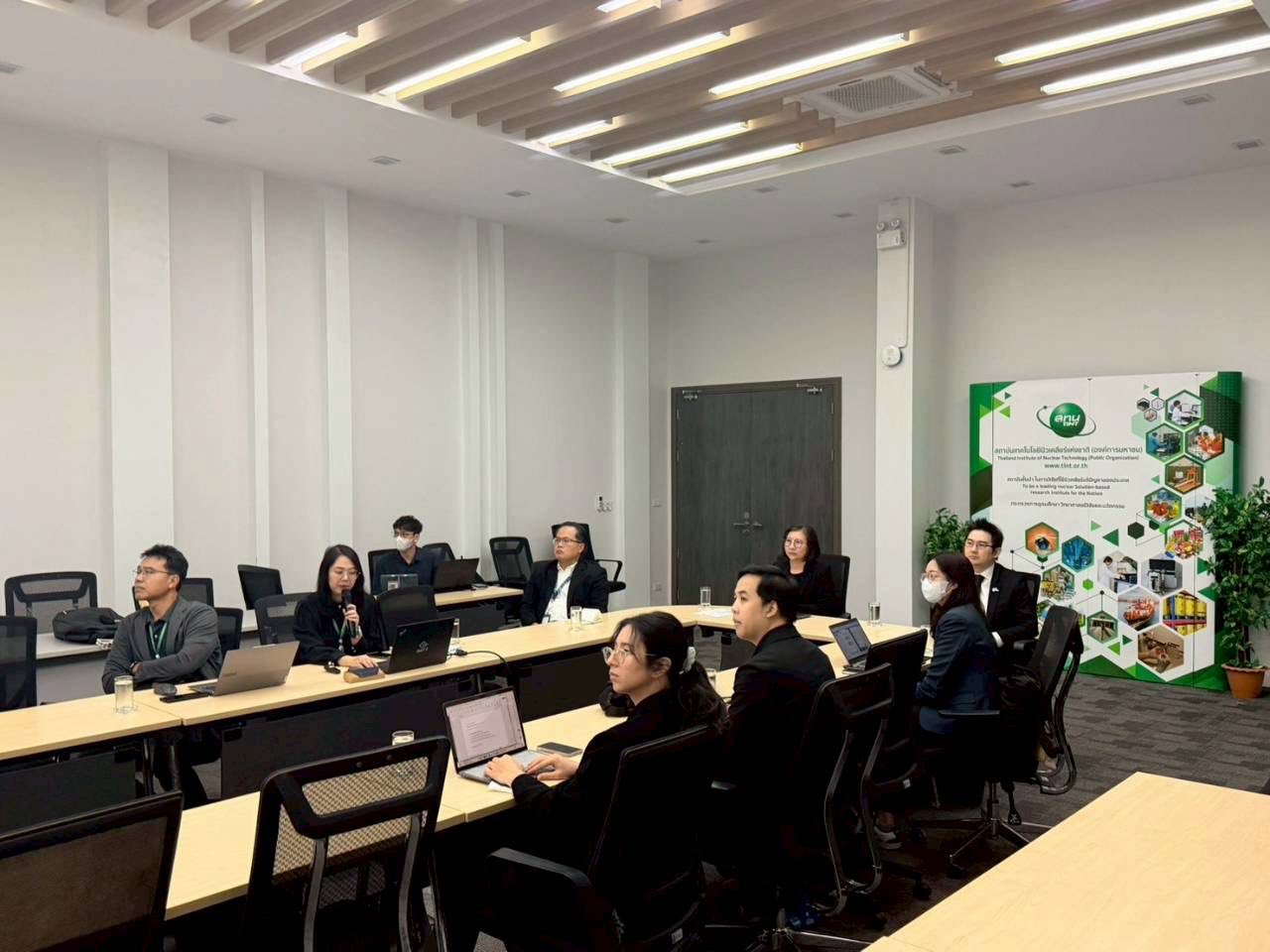 ในการนี้ ดร.กนกพร บุญศิริชัย รองผู้อำนวยการ สทน. และ รศ. ดร.สมศักดิ์ แดงติ๊บ ผู้จัดการศูนย์วิจัยและพัฒนาเทคโนโลยีนิวเคลียร์ ให้การต้อนรับ พร้อมด้วย ดร.ศรินรัตน์ วงษ์ลี หัวหน้าโครงการ และคณะนักวิจัย นำเสนอผลการดำเนินงานโครงการพัฒนาระบบลำเลียงอนุภาคแบบปรับพลังงานและสถานีวิจัยระบบสุญญากาศด้วยลำอนุภาคโปรตอนจากเครื่องไซโคลตรอน เพื่อการวิเคราะห์คุณสมบัติของวัสดุและประเมินผลกระทบจากการฉายรังสี โดยได้ออกแบบและผลิตต้นแบบระบบลำเลียงอนุภาคแบบปรับพลังงานได้ พร้อมกลไกระบบและโปรแกรมการควบคุมและแสดงผล ที่ได้ผ่านการทดสอบเบื้องต้นก่อนการติดตั้งเข้ากับเครื่องไซโคลตรอนต่อไป