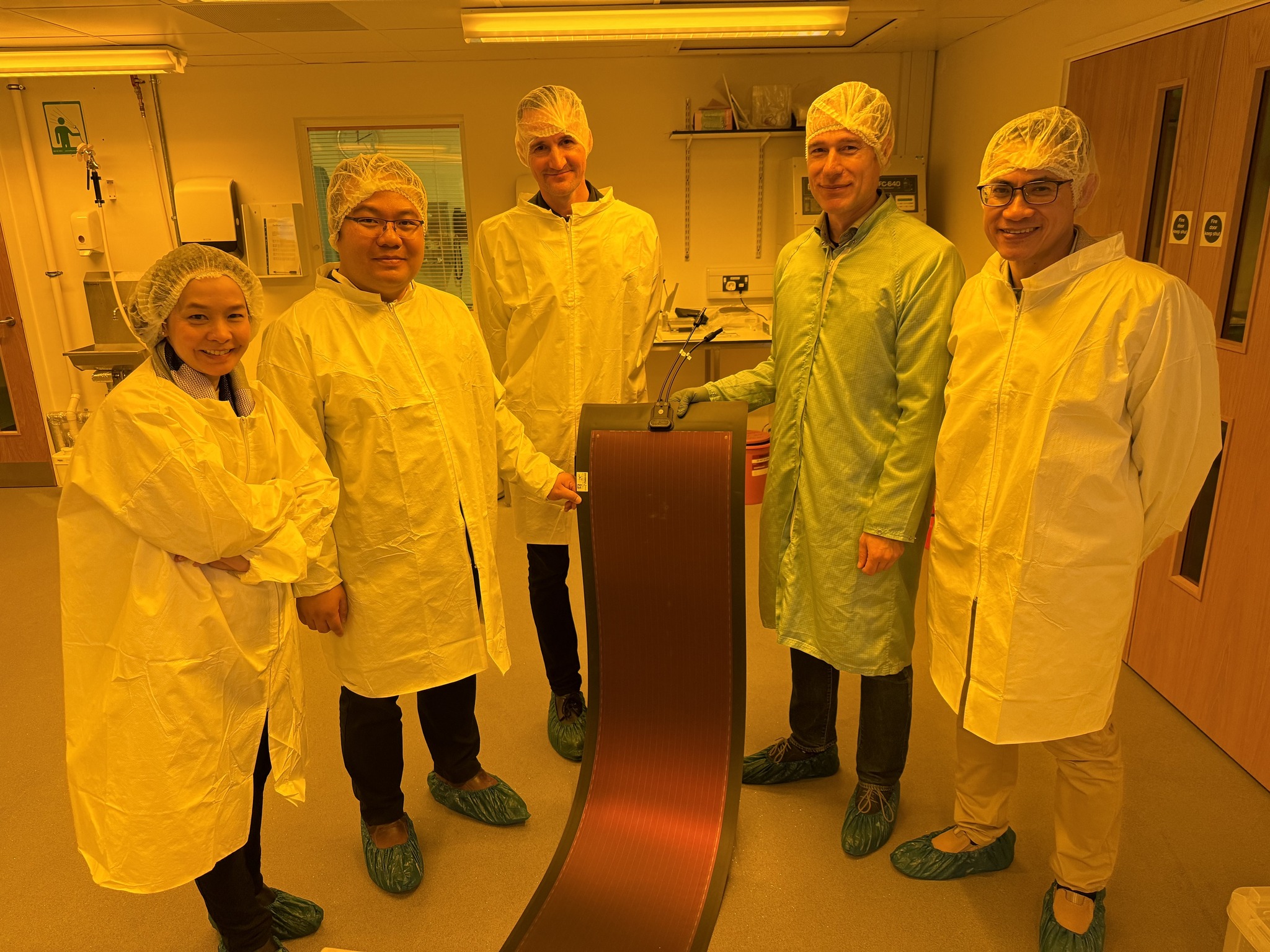ภายหลังจากการหารือดังกล่าว คณะผู้บริหารและคณะทำงานฯ บพค. ได้มีโอกาสเยี่ยมชมห้องปฏิบัติการการเคลือบผิวด้วยเทคนิค PVD ของ Dr. Moritz ซึ่งพบความน่าสนใจว่าเป็นห้องปฏิบัติการที่คำนึงถึงโอกาสในการ Scale Up ได้จริงในระดับอุตสาหกรรม มีการออกแบบเครื่องโดยประกอบจากโมดูลมาตรฐาน มูลค่ากว่า 10 ล้านปอนด์ เน้นการเคลือบฟิล์มออร์แกนิก เพื่อให้สามารถจัดการด้านการรีไซเคิลได้อย่างมีประสิทธิภาพ โดยเฉพาะการเคลือบบนโซลาร์เซล ซึ่งในปัจจุบันมักใช้ฟิลม์ทั่วไปที่ทำให้รีไซเคิลได้ยาก ต้องกำจัดด้วยการฝังกลบ ไม่สอดคล้องกับทิศทางในการส่งเสริมเรื่องสิ่งแวดล้อมและเศรษฐกิจหมุนเวียน จากการเยี่ยมชมห้องปฏิบัติการในครั้งนี้ เป็นการเปิดโอกาสในการออกแบบความร่วมมือระหว่าง บพค. และภาควิชาฟิสิกส์ มหาวิทยาลัยอ๊อกซ์ฟอร์ดเพื่อพัฒนาแลกเปลี่ยนบุคลากรวิจัยระหว่างสองประเทศในโอกาสต่อไป