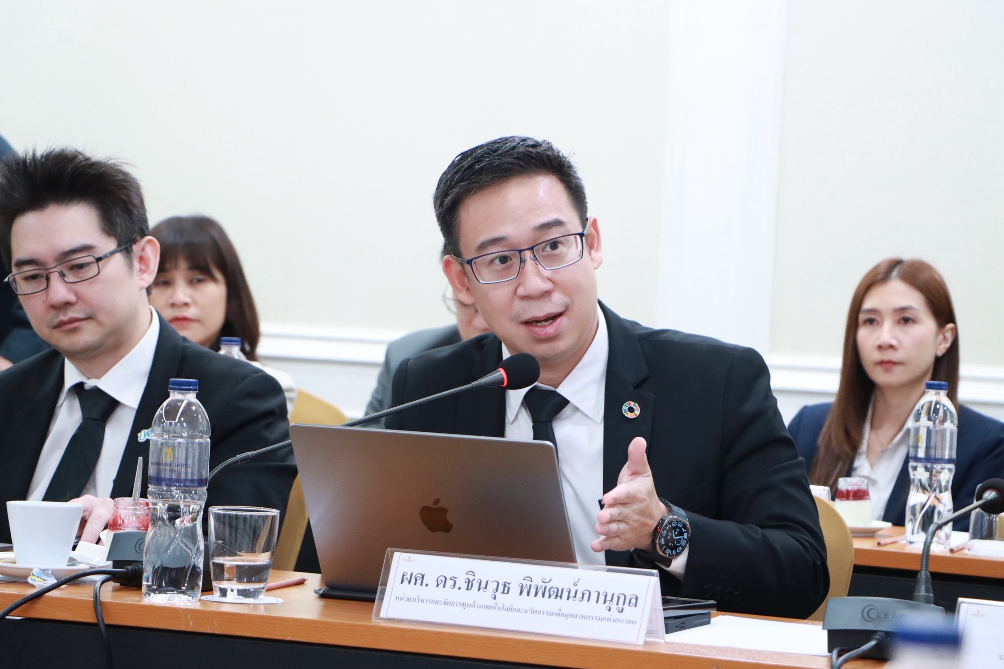 ด้าน รศ. ดร.กานดาฯ ผู้อำนวยการ บพข. และคณะ ได้นำเสนอภาพรวมบทบาทภารกิจของหน่วยงานในการสนับสนุนทุนวิจัยและนวัตกรรมเพื่อเพิ่มขีดความสามารถในการแข่งขันของภาคการผลิตและภาคบริการ รวมถึงการส่งเสริมการถ่ายทอดเทคโนโลยี การสร้างตลาดนวัตกรรม และการใช้ประโยชน์เชิงพาณิชย์ โดยมีหลายแผนงานที่สามารถเชื่อมต่อและขยายผลจาก บพค. ได้ อาทิ แผนงานด้านพลังงาน โครงสร้างพื้นฐาน และอาหารมูลค่าสูง นอกจากนี้ ยังได้แนะนำแพลตฟอร์มบริหารจัดการโครงการวิจัย ซึ่งช่วยวิเคราะห์และจัดกลุ่มโครงการให้สอดคล้องกับเงื่อนไขของแต่ละแผนงานและศักยภาพเชิงพาณิชย์