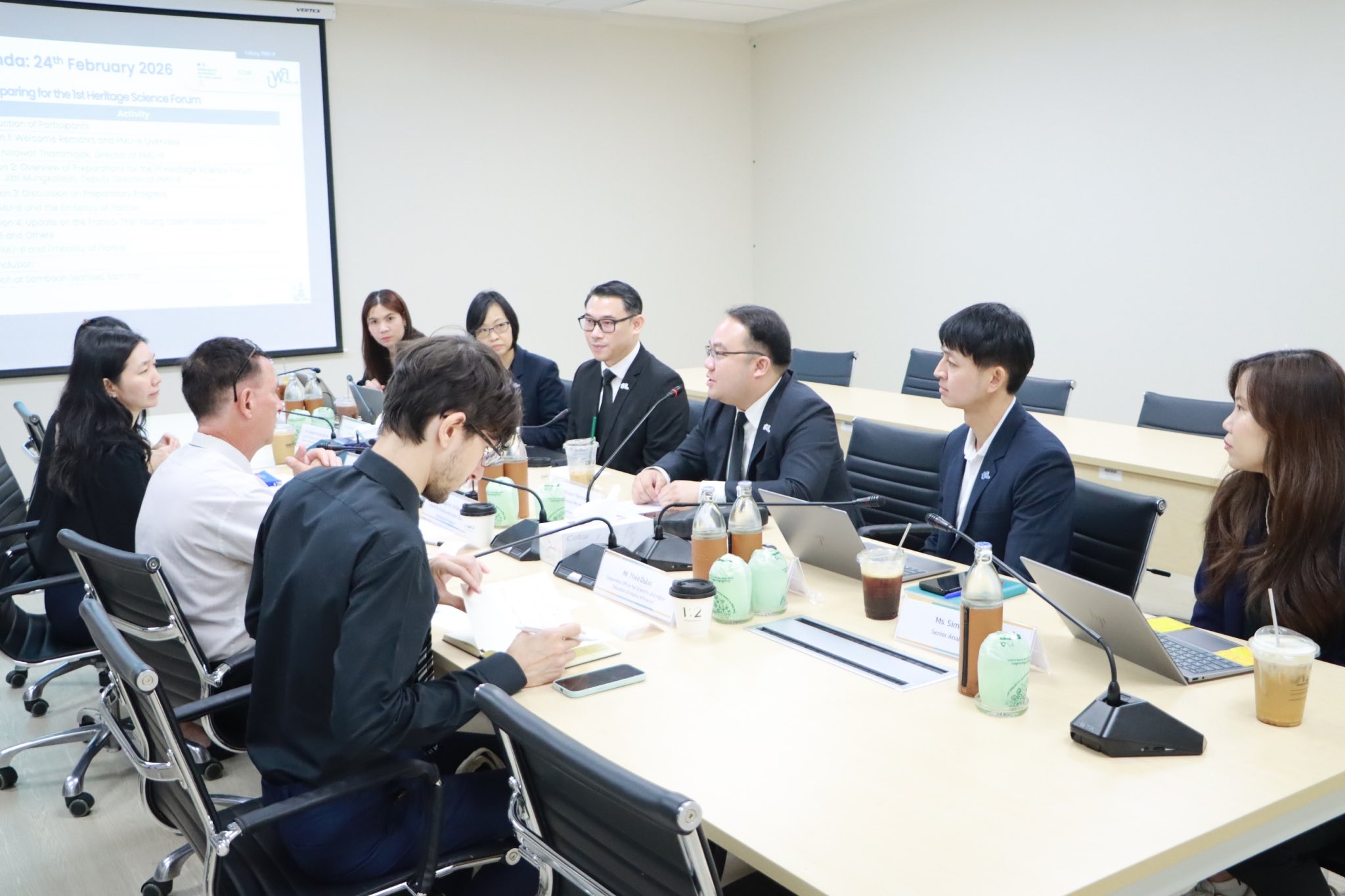 เมื่อวันที่ 24 กุมภาพันธ์ 2569 ดร.ณิรวัฒน์ ธรรมจักร์ ปฏิบัติหน้าที่ผู้อำนวยการหน่วยบริหารจัดการทุนด้านเทคโนโลยีและนวัตกรรมเพื่ออุตสาหกรรมแห่งอนาคต (บพค.) ภายใต้สำนักงานเร่งรัดการวิจัยและนวัตกรรมเพื่อเพิ่มความสามารถการแข่งขันและการพัฒนาพื้นที่ (องค์การมหาชน) (รวพ.) กระทรวงการอุดมศึกษา วิทยาศาสตร์ วิจัยและนวัตกรรม (อว.) พร้อมด้วย ดร.จิตติ มังคละศิริ ปฏิบัติหน้าที่รองผู้อำนวยการ บพค. และเจ้าหน้าที่ บพค. ให้การต้อนรับ Dr. Ludovic Andres, Attaché for Scientific and Higher Education Cooperation และคณะผู้แทนจากสถานเอกอัครราชทูตฝรั่งเศสประจำประเทศไทย เพื่อร่วมหารือแนวทางการจัดงาน The 1st Heritage Science Forum “The Starting Point: Applying Advanced Science to Preserve and Enhance Cultural Heritage” ซึ่งมีกำหนดจัดขึ้นในวันที่ 12-13 พฤษภาคม 2569 ณ กรุงเทพมหานคร และจังหวัดพระนครศรีอยุธยา โดยมีเป้าหมายเพื่อสร้างเครือข่ายความร่วมมือทางวิชาการระหว่างนักวิจัยไทยและฝรั่งเศส ในสาขา“วิทยาศาสตร์มรดก” (Heritage Science) ซึ่งเป็นการบูรณาการระหว่างวิทยาศาสตร์ขั้นสูง ประวัติศาสตร์ และศิลปะ เข้าด้วยกันเพื่อพัฒนาความเข้าใจเชิงลึกและระบบการจัดการมรดกวัฒนธรรมอย่างมีประสิทธิภาพ