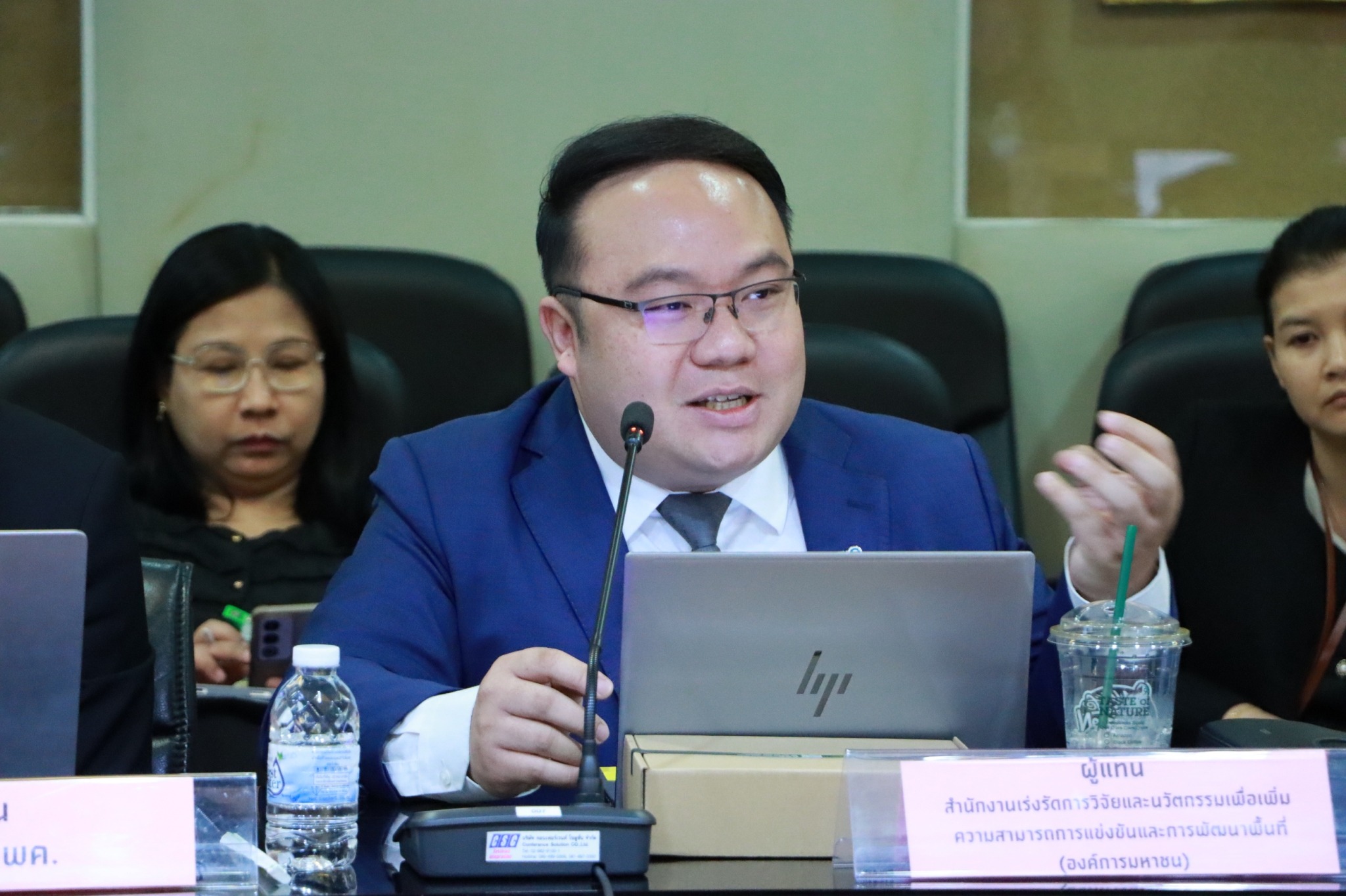 เมื่อวันที่ 27 กุมภาพันธ์ 2569 ดร.ณิรวัฒน์ ธรรมจักร์ ปฏิบัติหน้าที่ผู้อำนวยการหน่วยบริหารจัดการทุนด้านเทคโนโลยีและนวัตกรรมเพื่ออุตสาหกรรมแห่งอนาคต (บพค.) ภายใต้สำนักงานเร่งรัดการวิจัยและนวัตกรรมเพื่อเพิ่มความสามารถการแข่งขันและการพัฒนาพื้นที่ (องค์การมหาชน) (รวพ.) กระทรวงการอุดมศึกษา วิทยาศาสตร์ วิจัยและนวัตกรรม (อว.) พร้อมด้วย ผศ.ดร.ชินวุธ พิพัฒน์ภานุกูล ผู้ทรงคุณวุฒิ บพค. เข้าร่วมการประชุมหารือเชิงยุทธศาสตร์กับกรุงเทพมหานคร โดยมี รศ.ดร.ทวิดา กมลเวชช รองผู้ว่าราชการกรุงเทพมหานคร เป็นประธาน พร้อมด้วย นายศานนท์ หวังสร้างบุญ รองผู้ว่าฯ และหน้าส่วนราชการฯ ร่วมกับสำนักงานคณะกรรมการส่งเสริมวิทยาศาสตร์ วิจัยและนวัตกรรม (สกสว.) นำโดย ศ.ดร.จักรพันธ์ สุทธิรัตน์ รองผู้อำนวยการ สกสว. และ ผศ.ดร.พูลศักดิ์ โกษียาภรณ์ รองผู้อำนวยการ สกสว. เพื่อกำหนดแนวทางการสนับสนุนและบูรณาการงานวิจัยและนวัตกรรมจากกองทุนส่งเสริม ววน. ในการขับเคลื่อนนโยบาย “9 ด้าน 9 ดี” ณ ห้องประชุมนพรัตน์ ชั้น 5 ศาลาว่าการกรุงเทพมหานคร (เสาชิงช้า) เขตพระนคร