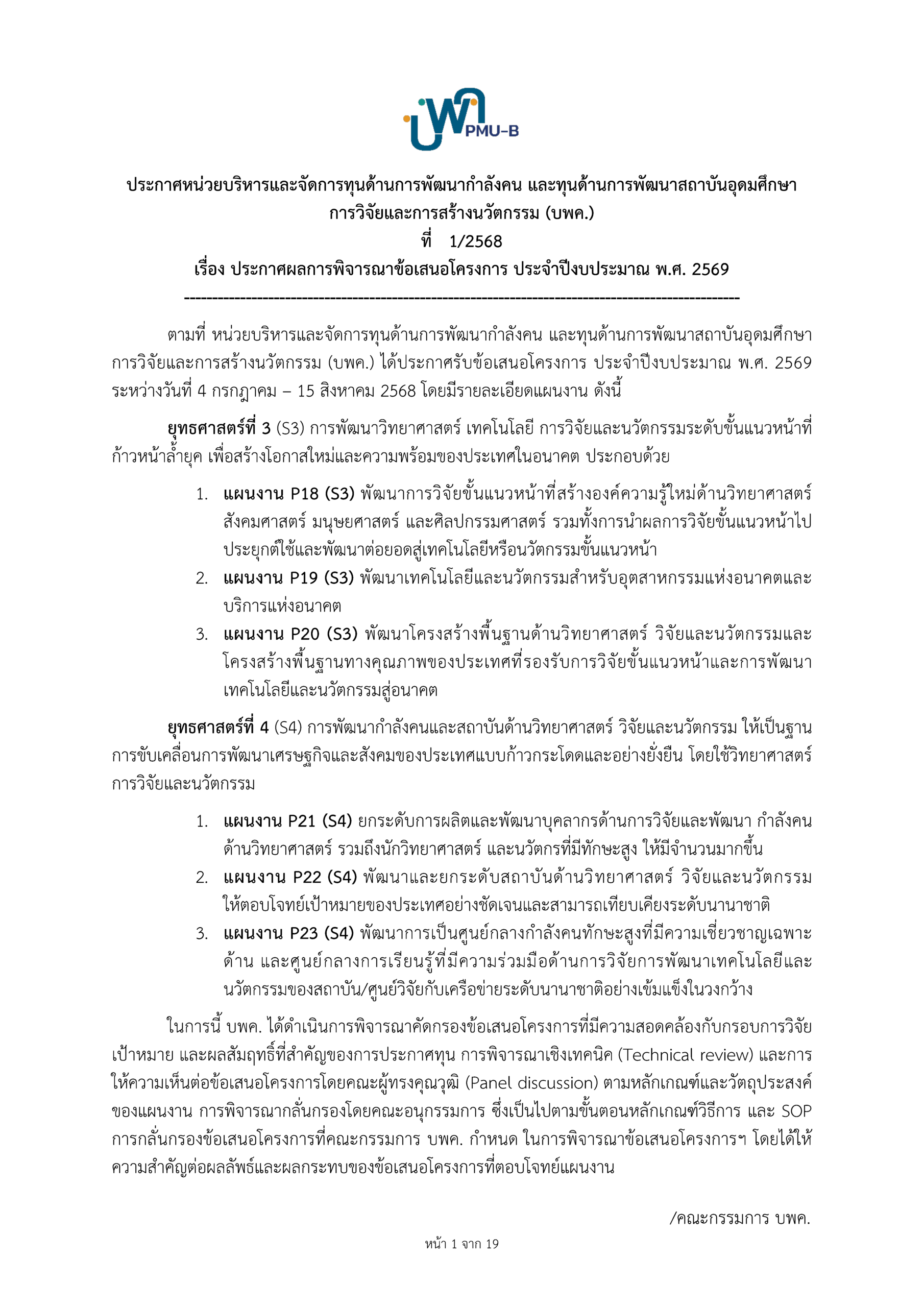 การวิจัยและการสร้างนวัตกรรม (บพค.)