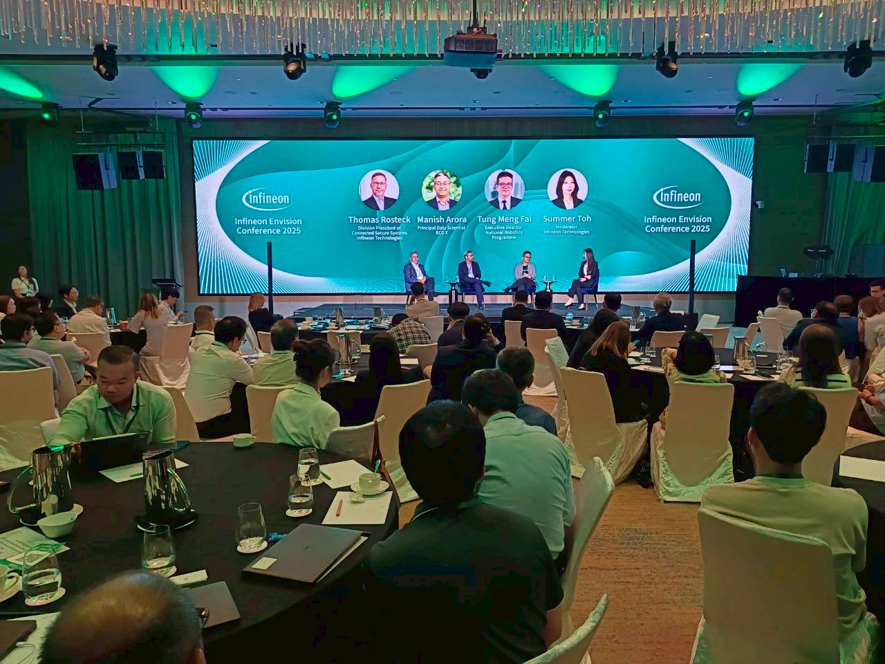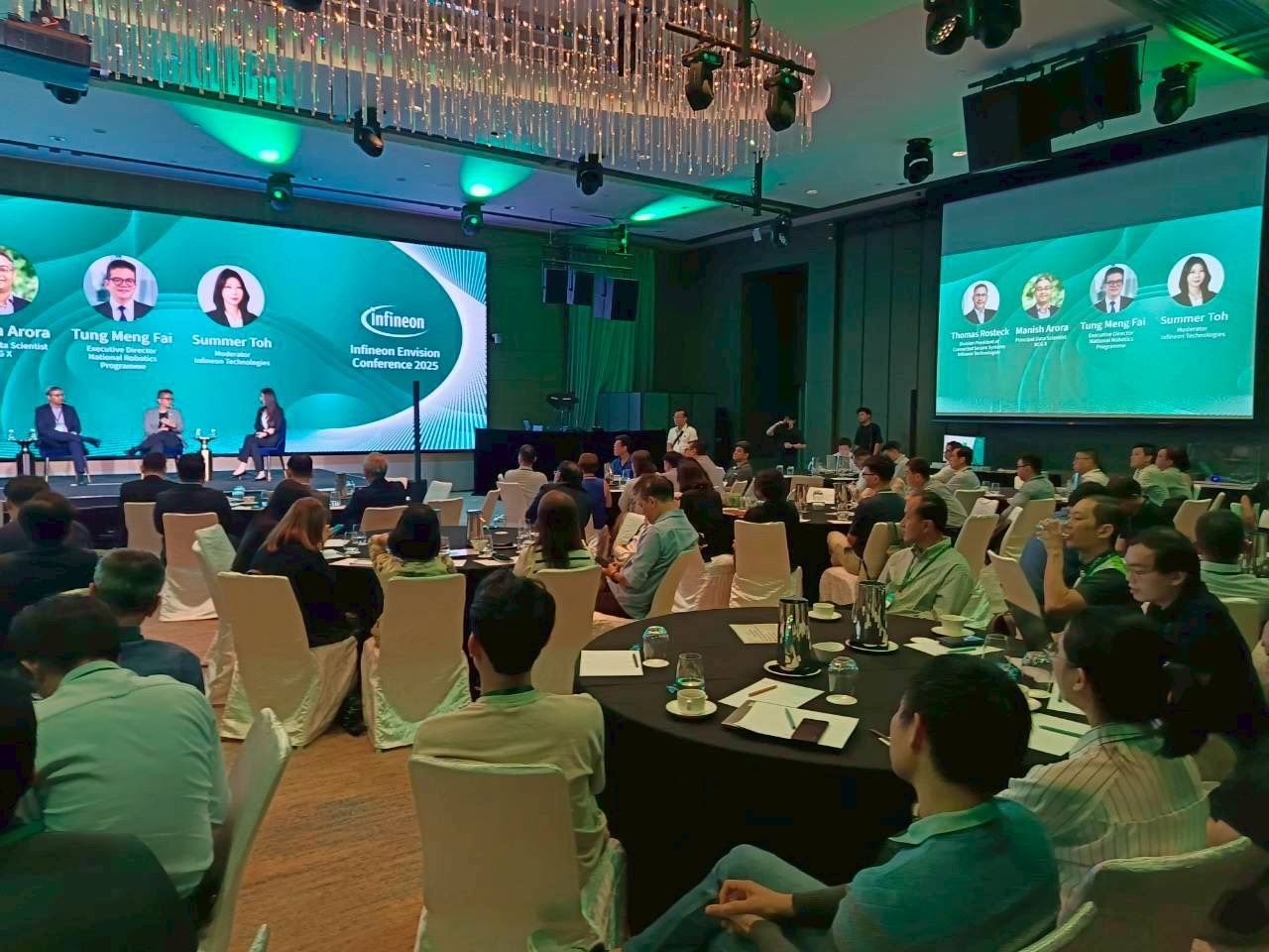 เมื่อวันที่ 2 กันยายน 2568 หน่วยบริหารและจัดการทุนด้านการพัฒนากำลังคน และทุนด้านการพัฒนาสถาบันอุดมศึกษา การวิจัยและการสร้างนวัตกรรม (บพค.) กระทรวงการอุดมศึกษา วิทยาศาสตร์ วิจัยและนวัตกรรม (อว.) นำโดย ดร.ณิรวัฒน์ ธรรมจักร์ ผู้อำนวยการ บพค. และ ดร.รัฐภูมิ ตู้จินดา รองผู้อำนวยการ บพค. พร้อมด้วยคณะ บพค. เข้าร่วมงาน Infineon Envision Conference 2025 ณ ห้องบอลรูม 1 One Farrer Hotel ประเทศสิงคโปร์ งานเสวนานี้จัดขึ้นโดย Infineon Technologies AG ซึ่งมีเป้าหมายในการนำเสนอข้อมูลด้านเทคโนโลยีใหม่ ๆ และร่วมแลกเปลี่ยนความรู้ รวมถึงสาธิตเทคโนโลยี Demo Set ทางด้านปัญญาประดิษฐ์ (AI) อินเทอร์เน็ตของสรรพสิ่ง (AIoT) และหุ่นยนต์ (Robotics) ซึ่งได้รับความสนใจจากผู้เข้าร่วมงานทั้งนักวิจัยและบุคลากรในวงการกว่า 150 คนทั่วประเทศ