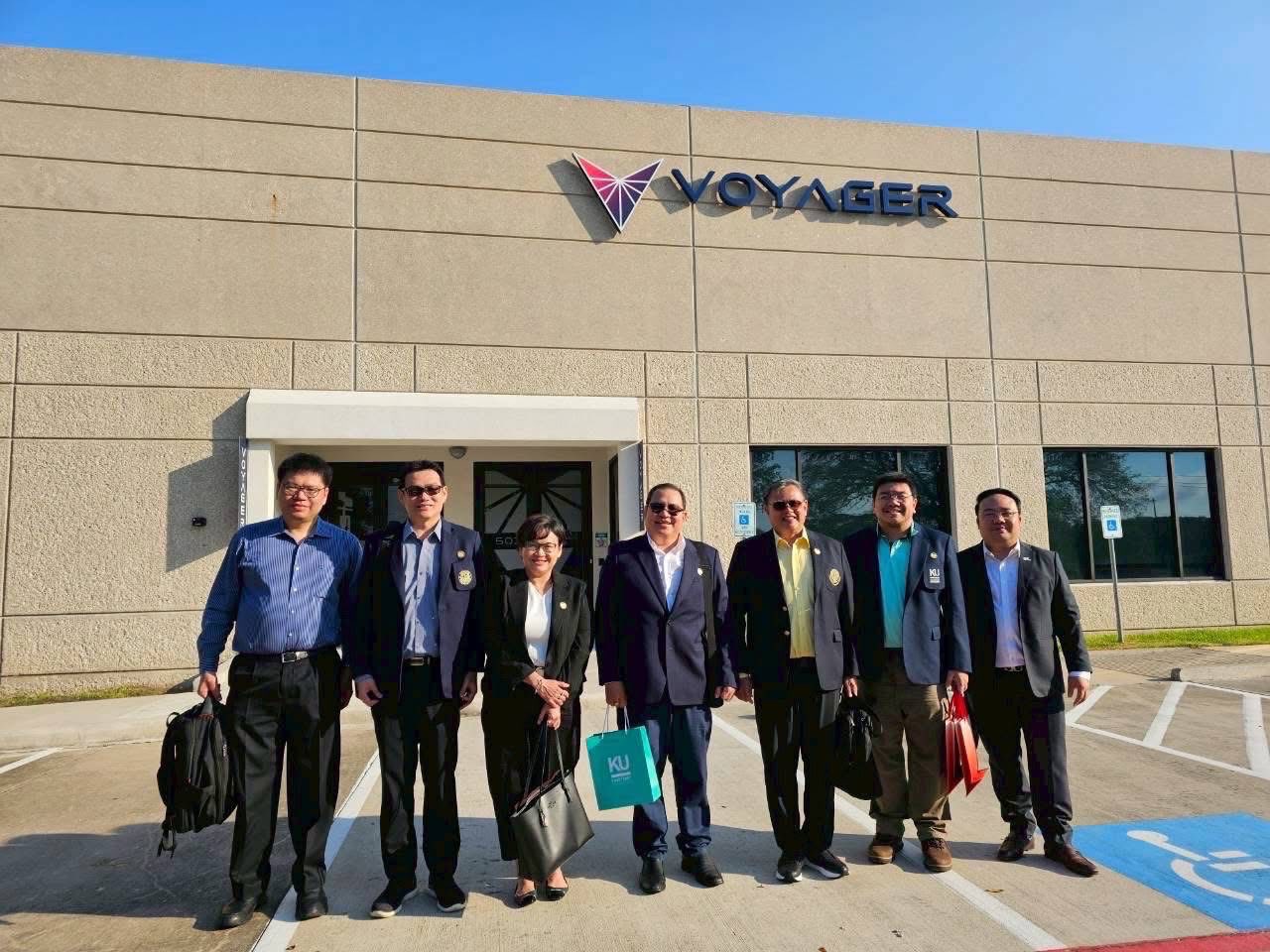เมื่อวันที่ 11 กันยายน 2568 ณ Voyager Technologies ที่เมือง Houston มลรัฐเท็กซัส ประเทศสหรัฐอเมริกา ดร.ณิรวัฒน์ ธรรมจักร์ ผู้อำนวยการหน่วยบริหารและจัดการทุนด้านการพัฒนากำลังคน และทุนด้านการพัฒนาสถาบันอุดมศึกษา การวิจัยและการสร้างนวัตกรรม (บพค.) พร้อมด้วยผู้บริหารและคณะนักวิจัยโครงการ Thailand Liquid Crystals in Space (TLC) มหาวิทยาลัยเกษตรศาสตร์ นำโดย ดร.ดำรงค์ ศรีพระราม รักษาการแทนอธิการบดีมหาวิทยาลัยเกษตรศาสตร์ รศ.ดร.ณัฐพร ฉัตรแถม นักวิจัยหัวหน้าโครงการฯ ซึ่งได้รับทุนสนับสนุนการวิจัยและพัฒนาจาก บพค. และสำนักงานพัฒนาเทคโนโลยีอวกาศและภูมิสารสนเทศ (GISTDA) นำโดย ดร.ดำรงค์ฤทธิ์ เนียมหมวด รองผู้อำนวยการ GISTDA เข้าร่วมการประชุมกับบริษัท Voyager Nanoracks LLC นำโดย Mr. Scott Rodriguez และคณะผู้ให้คำปรึกษาด้านการทดลองในอวกาศแก่นักวิจัยในโครงการ