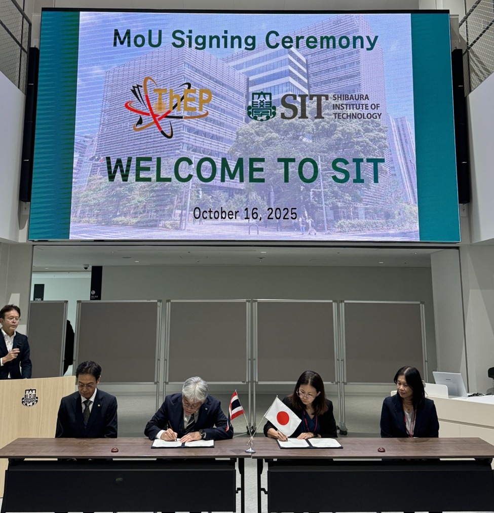 ระหว่างวันที่ 16 – 17 ตุลาคม 2568 ดร.ณิรวัฒน์ ธรรมจักร์ ผู้อำนวยการหน่วยบริหารและจัดการทุนด้านการพัฒนากำลังคน และทุนด้านการพัฒนาสถาบันอุดมศึกษา การวิจัยและการสร้างนวัตกรรม (บพค.) กระทรวงการอุดมศึกษา วิทยาศาสตร์ วิจัยและนวัตกรรม (อว.) มอบหมาย ดร.จิตติ มังคละศิริ รองผู้อำนวยการ บพค. เข้าร่วมงานสัมมนา SIT International Joint Symposium on “Frontier Research of Quantum Beam and Material Applications in Japan and Thailand” and “S-SPIRE Program” และร่วมพิธีลงนามบันทึกข้อตกลงความร่วมมือด้านวิชาการระหว่าง สถาบันเทคโนโลยีชิบาอุระ (SIT) ประเทศญี่ปุ่น และศูนย์ความเป็นเลิศด้านฟิสิกส์ (ThEP) โดยมีรองศาสตราจารย์ ดร.ดวงมณี ว่องรัตนะไพศาล ผู้อำนวยการศูนย์ความเป็นเลิศด้านฟิสิกส์ และหัวหน้าศูนย์รวมผู้เชี่ยวชาญด้านเครื่องเร่งอนุภาค และคณะนักวิจัยในเครือข่ายศูนย์ฯ พร้อมกับนางสาวสตตกมล เกียรติพานิช ผู้อำนวยการกองบริหารทุนวิจัยและนวัตกรรม 2 สำนักงานการวิจัยแห่งชาติ (วช.)