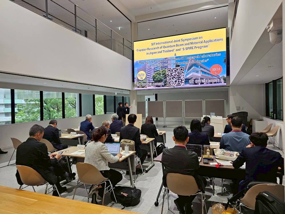 โดย Dr.Jun Yamada อธิการบดีสถาบันเทคโนโลยีชิบาอุระ ได้ให้เกียรติกล่าวเปิดงาน International Joint Symposium on “Frontier Research of Quantum Beam and Material Applications in Japan and Thailand” and “S-SPIRE Program” และ Dr. Hitoshi Nakamura รองอธิการบดีเป็นผู้กล่าวต้อนรับ โดยมีหัวข้อบรรยายในด้านควอนตัมบีมและวัสดุศาสตร์ รวมไปถึงการนำเสนอโครงการ S-SPIRE ซึ่งเป็นโครงการหลักของ SIT เพื่อส่งเสริมความร่วมมือระดับโลก โดยเฉพาะในด้านวัสดุไฮไดรด์ มีผู้ร่วมบรรยายทั้งอาจารย์ นักวิจัย จากประเทศญี่ปุ่นและประเทศไทยกว่า 10 หัวข้อ และในโอกาสเดียวกันนี้ได้มีการลงนามบันทึกข้อตกลงความร่วมมือด้านวิชาการระหว่าง สถาบันเทคโนโลยีชิบาอุระ (SIT) จากประเทศญี่ปุ่น และศูนย์ความเป็นเลิศด้านฟิสิกส์ (ThEP) จากประเทศไทย โดยมีวัตถุประสงค์เพื่อส่งเสริมความร่วมมือด้านการวิจัยและการศึกษาในสาขาควอนตัมบีมและการประยุกต์ด้านวัสดุศาสตร์ และเพื่อสร้างศักยภาพของนักวิจัยและนักศึกษาของทั้งสองฝ่าย โดยมีผู้แทนจากหน่วยงานสนับสนุนทุนวิจัยของไทย ได้แก่ ดร.จิตติ มังคละศิริ รองผู้อำนวยการ บพค. และ นางสาวสตตกมล เกียรติพานิช ผู้อำนวยการกองบริหารทุนวิจัยและนวัตกรรม 2 สำนักงานการวิจัยแห่งชาติ (วช.) ร่วมเป็นสักขีพยาน