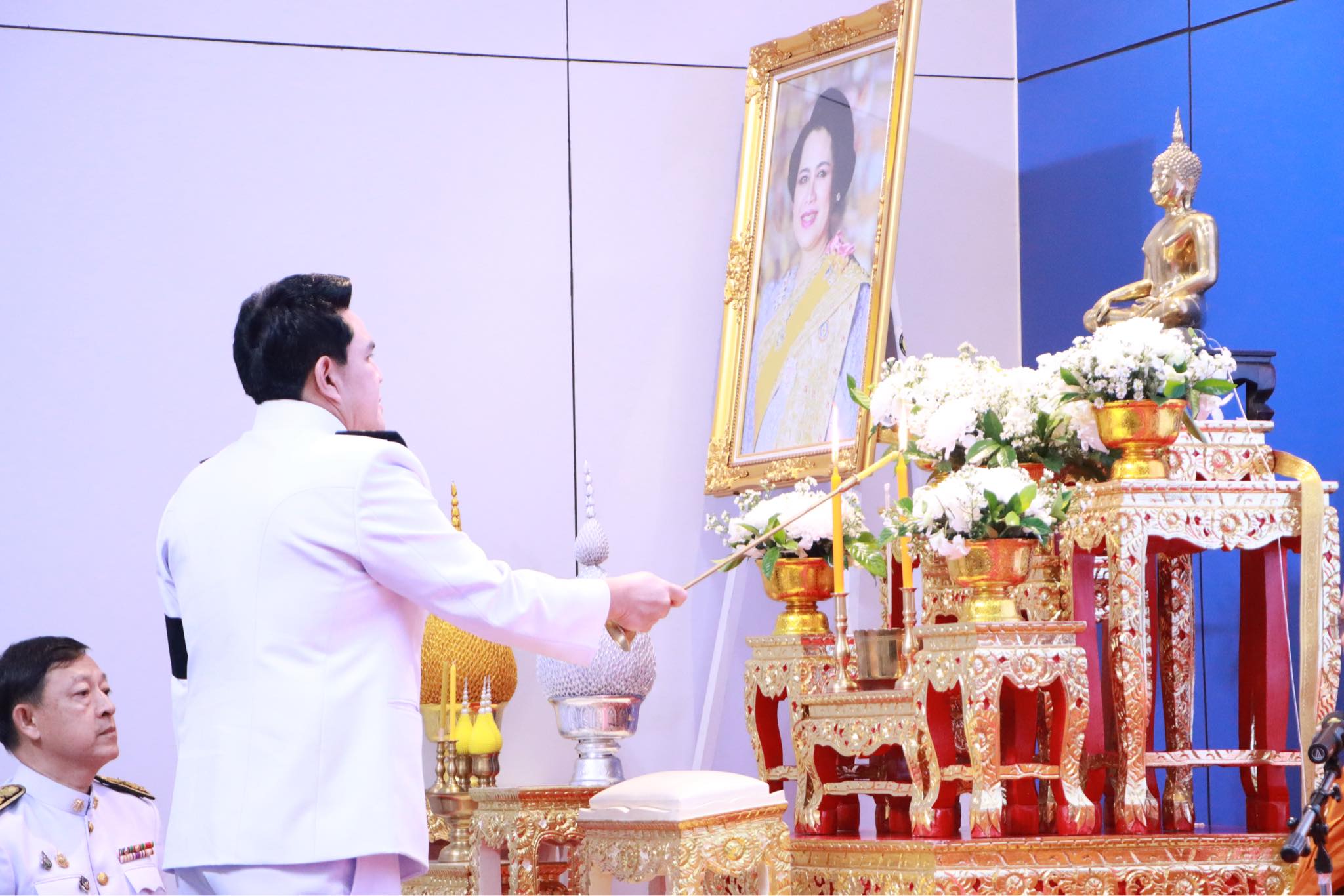 สำหรับการบำเพ็ญกุศลอุทิศถวายเป็นพระราชกุศล ณ ห้องแถลงข่าวฯ รัฐมนตรี อว. เป็นประธานจุดธูปเทียนบูชาพระรัตนตรัยและจุดเครื่องทองน้อยถวายสักการะเบื้องหน้าพระบรมฉายาลักษณ์สมเด็จพระนางเจ้าสิริกิติ์ พระบรมราชินีนาถ พระบรมราชชนนีพันปีหลวง พระสงฆ์สวดพระพุทธมนต์ แล้ว รัฐมนตรีทอดผ้าพระสงฆ์สดับปกรณ์ คณะผู้บริหารฯ ประเคนภัตตาหารและจตุปัจจัยไทยธรรม แล้ว พระสงฆ์อนุโมทนา