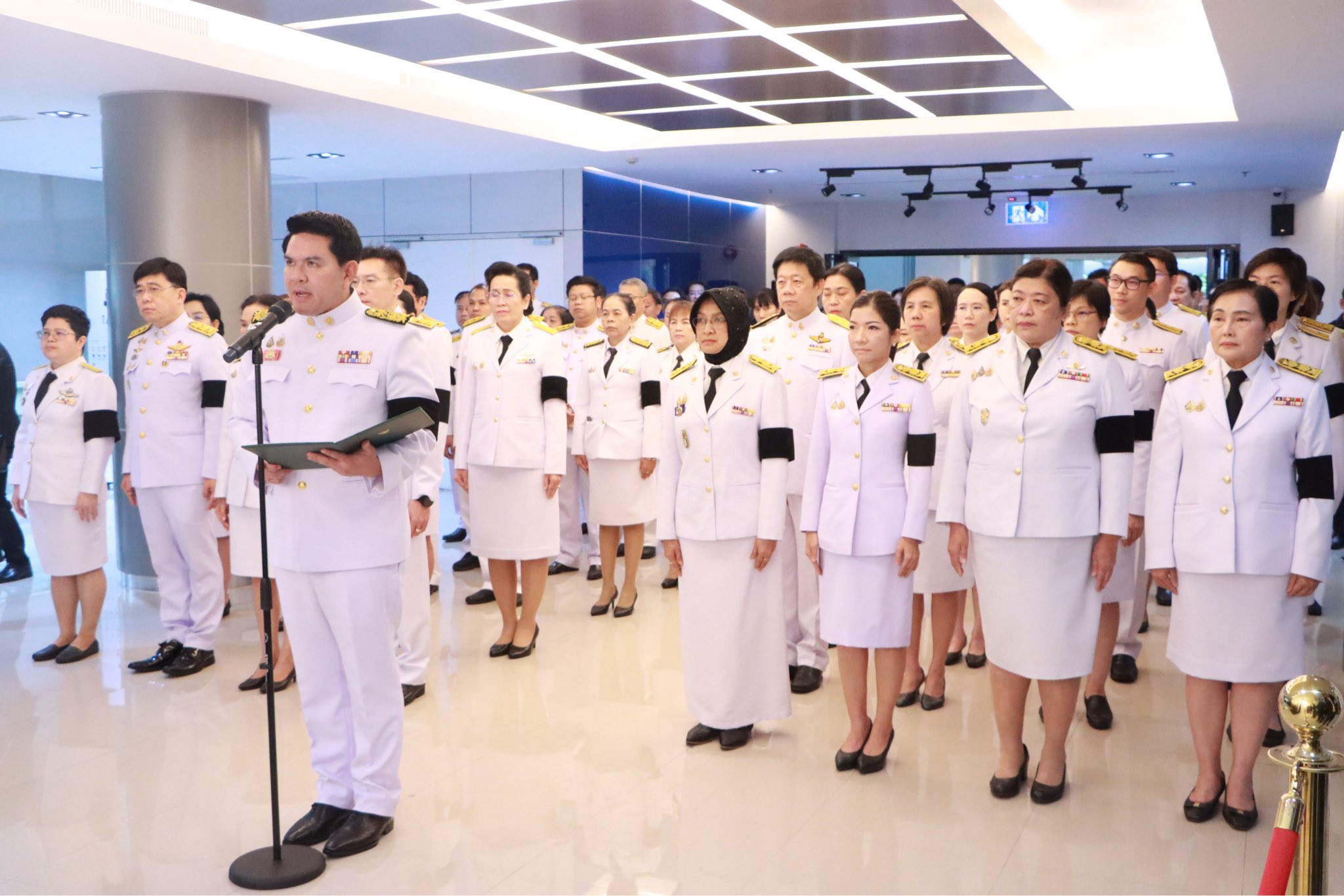 ต่อมารัฐมนตรีได้นำคณะผู้บริหาร ข้าราชการและเจ้าหน้าที่ อว. ร่วมพิธีถวายราชสักการะเบื้องหน้าพระบรมฉายาลักษณ์ฯ รัฐมนตรี อ่านประกาศถวายความอาลัย และเทิดทูนพระราชกรณียกิจ พระเกียรติคุณ ที่ทรงมีต่อประเทศและอาณาราษฎร จากนั้นได้ร่วมกันลงนามถวายความอาลัย ณ บริเวณด้านหน้าห้องแถลงข่าวฯ เพื่อน้อมรำลึกในพระมหากรุณาธิคุณที่ทรงมีต่อการศึกษา วิทยาศาสตร์ และการพัฒนาประเทศตลอดระยะเวลาอันยาวนานกว่า 70 ปี