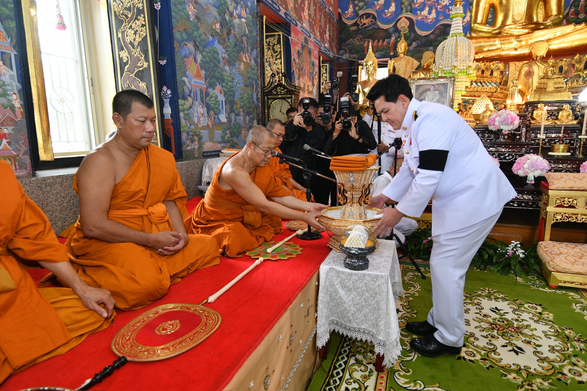 รัฐมนตรี อว. ได้ถวายความเคารพเบื้องหน้าพระบรมฉายาลักษณ์พระบาทสมเด็จพระเจ้าอยู่หัว แล้วประคองเชิญผ้าพระกฐินพระราชทานจากพานเข้าสู่พระอุโบสถ วางบนพานแว่นฟ้า กล่าวคำถวายผ้าพระกฐินพระราชทาน แล้วยกประเคน จากนั้นพระสงฆ์กระทำพิธีอปโลกน์ และสวดญัตติ พระสงฆ์รูปที่ได้รับฉันทานุมัติให้เป็นผู้ครองผ้าพระกฐินลงไปครองผ้า กลับขึ้นมานั่งยังอาสน์สงฆ์