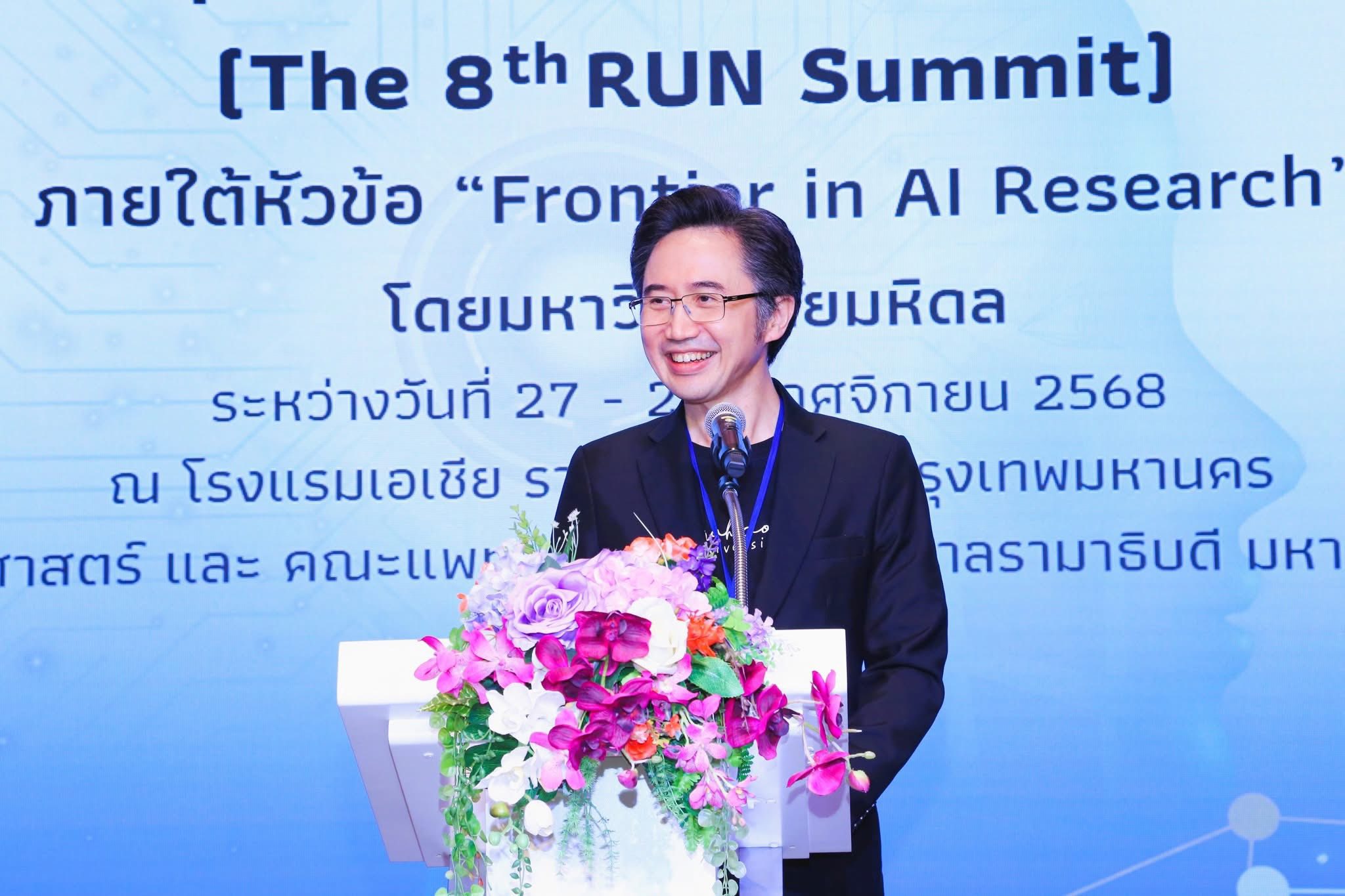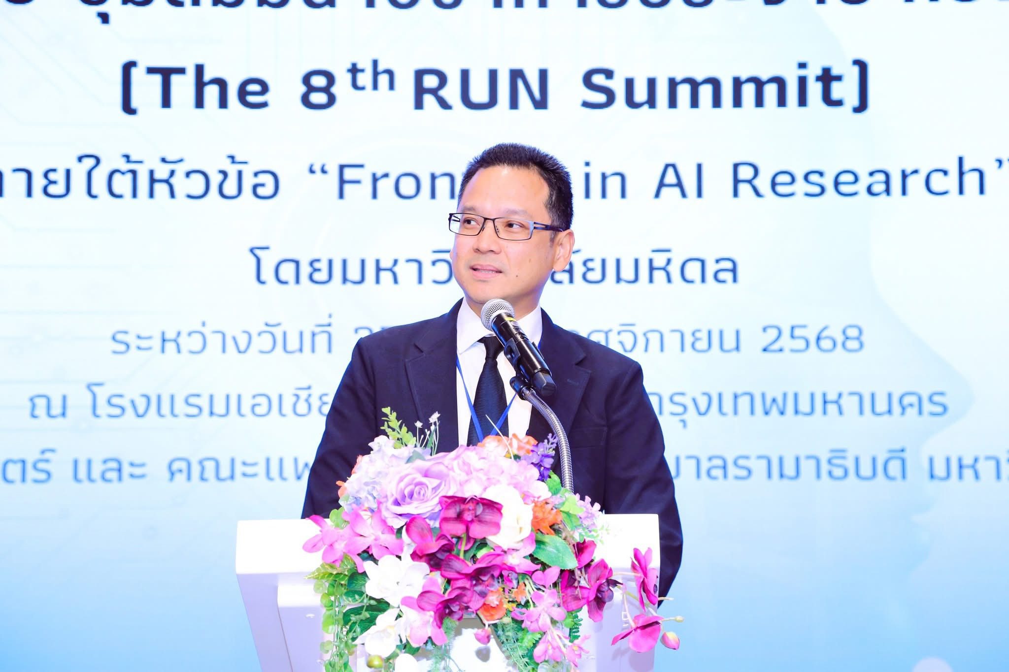 เมื่อวันที่ 27 พฤศจิกายน 2568 หน่วยบริหารและจัดการทุนด้านการพัฒนากำลังคน และทุนด้านการพัฒนาสถาบันอุดมศึกษา การวิจัยและการสร้างนวัตกรรม (บพค.) กระทรวงการอุดมศึกษา วิทยาศาสตร์ วิจัยและนวัตกรรม (อว.) นำโดย ดร.ณิรวัฒน์ ธรรมจักร์ ผู้อำนวยการ บพค. ได้รับเชิญเป็นวิทยากรบรรยายพิเศษ หัวข้อ “ทิศทางการวิจัยที่เป็น Frontier ของประเทศ และกรอบการให้ทุนวิจัย Frontier” ภายในงานประชุมสัมมนาวิชาการประจำปีกลุ่มเครือข่ายพันธมิตรมหาวิทยาลัยเพื่อการวิจัย ครั้งที่ 8 (The 8th Research University Network (RUN) Summit) ภายใต้แนวคิด ‘Frontier in AI Research’ โดยในปีนี้อำนวยการจัดงานโดยมหาวิทยาลัยมหิดลเป็นเจ้าภาพ ร่วมกับเครือข่ายมหาวิทยาลัยอีก 7 แห่ง ได้แก่ จุฬาลงกรณ์มหาวิทยาลัย มหาวิทยาลัยเกษตรศาสตร์ มหาวิทยาลัยธรรมศาสตร์ มหาวิทยาลัยขอนแก่น มหาวิทยาลัยเชียงใหม่ มหาวิทยาลัยสงขลานครินทร์ และมหาวิทยาลัยนเรศวร ณ ห้องประชุมกิ่งเพชร ชั้น 3 โรงแรมเอเชีย กรุงเทพฯ ถนนพญาไท เขตราชเทวี กรุงเทพมหานคร โดยมีคณะอาจารย์และนักวิจัยในเครือข่ายมหาวิทยาลัยวิจัยเข้าร่วมกว่า 130 คน