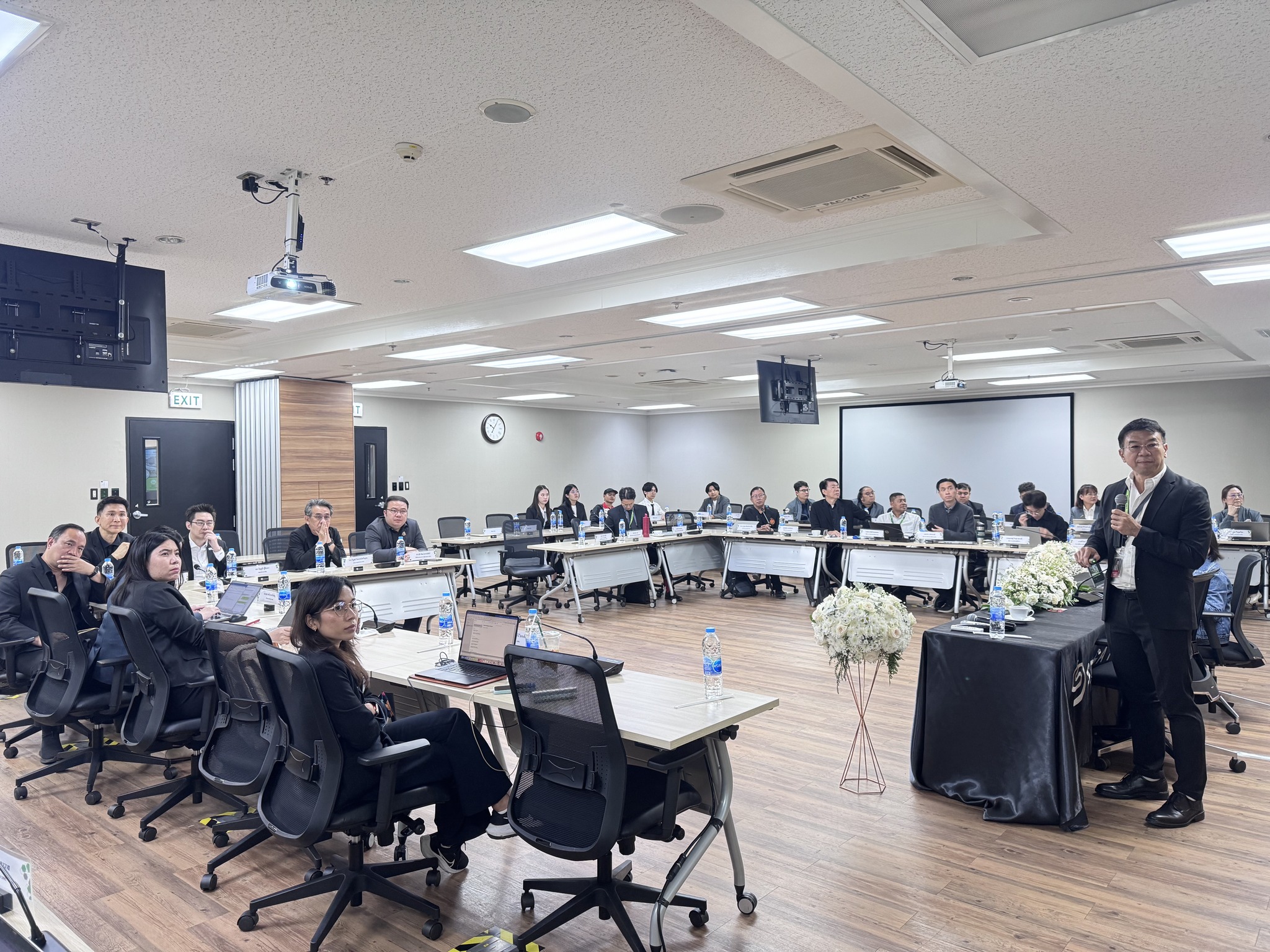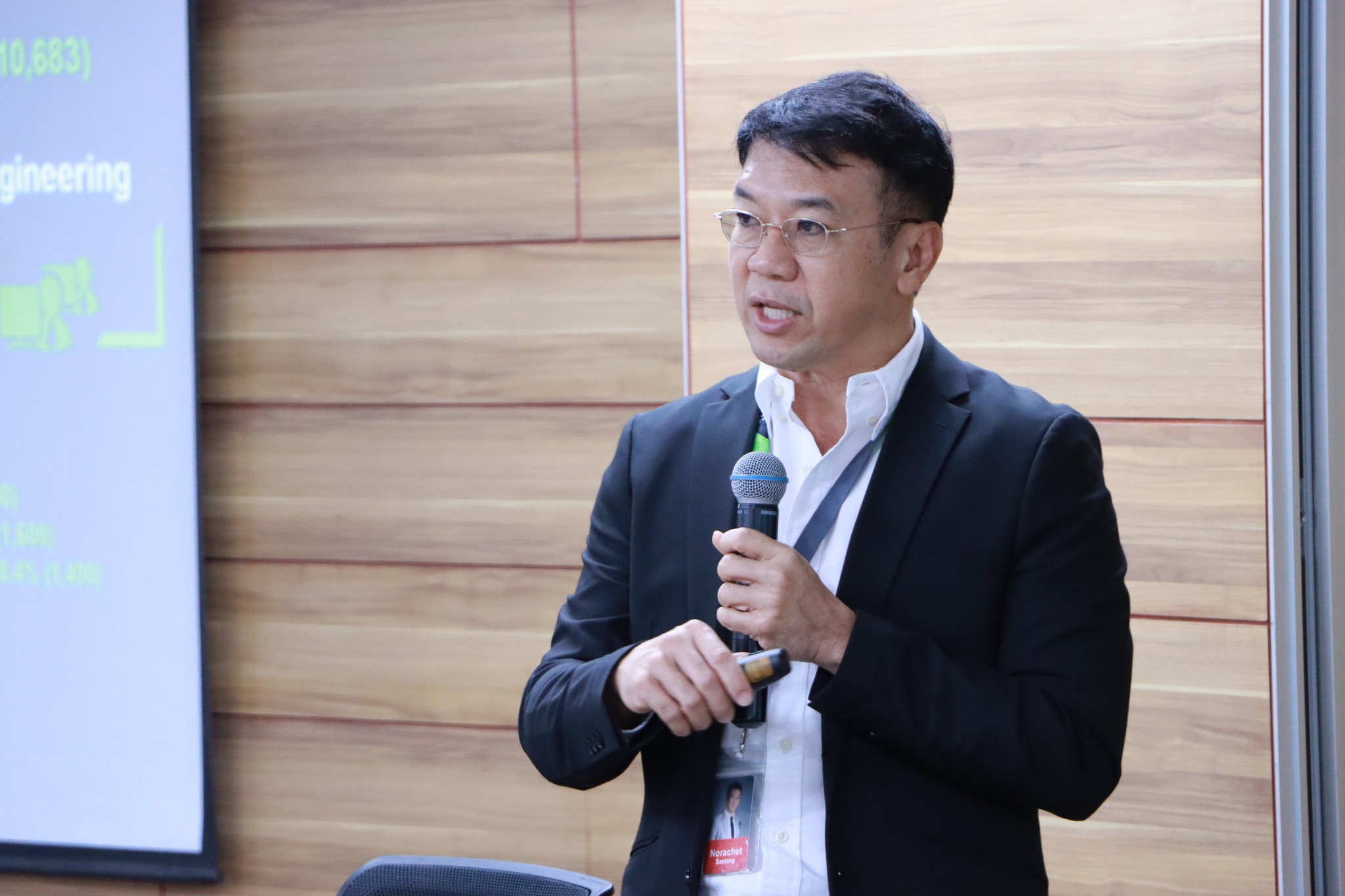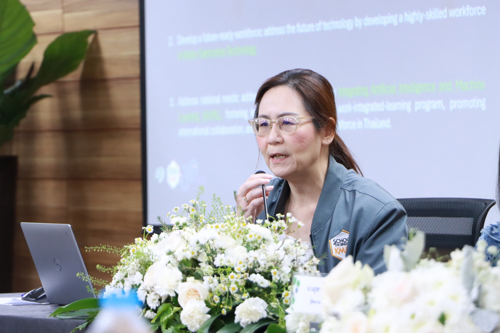 ด้าน ศ.ดร.อุมา สีบุญเรือง หัวหน้าโครงการ พร้อมผู้เข้าร่วมโครงการ ได้นำเสนอผลการดำเนินงานและความสำเร็จของโครงการพัฒนากำลังคนสมรรถนะสูงด้านเซมิคอนดักเตอร์ขั้นสูง เทคโนโลยีเวเฟอร์ และปัญญาประดิษฐ์/แมชชีนเลิร์นนิง ผ่านความร่วมมือแบบไตรภาคีของสถาบันการศึกษา สถาบันวิจัย และภาคอุตสาหกรรม เพื่อยกระดับกำลังคนในอุตสาหกรรมเซมิคอนดักเตอร์