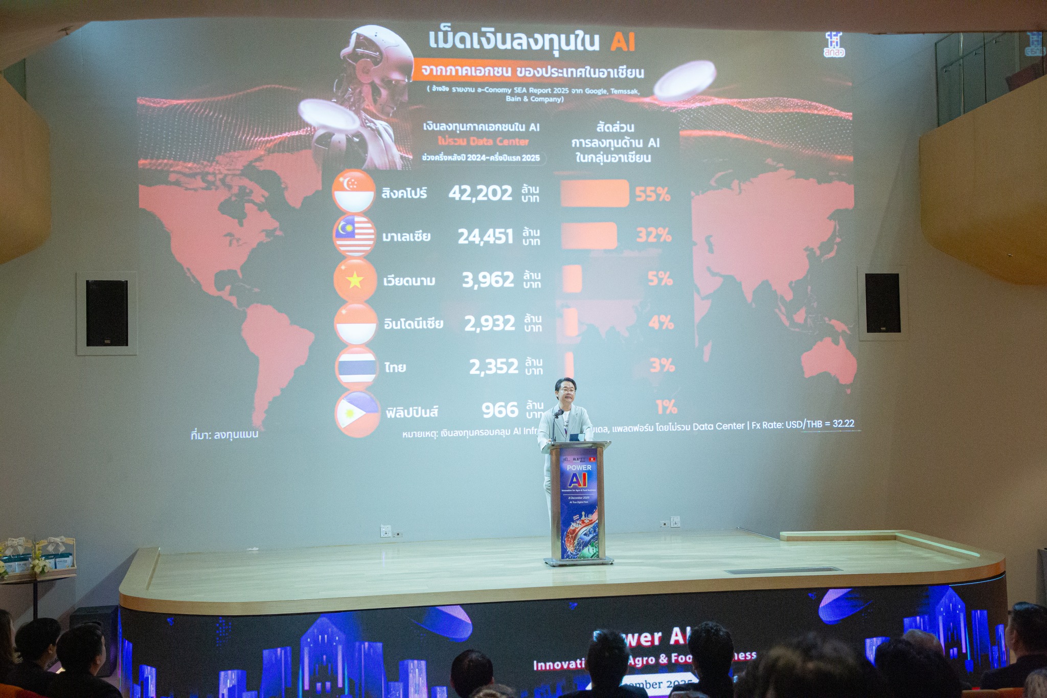 เมื่อวันที่ 8 ธันวาคม 2568 หน่วยบริหารและจัดการทุนด้านการพัฒนากำลังคน และทุนด้านการพัฒนาสถาบันอุดมศึกษา การวิจัยและการสร้างนวัตกรรม (บพค.) กระทรวงการอุดมศึกษา วิทยาศาสตร์ วิจัยและนวัตกรรม (อว.) นำโดย ดร.รัฐภูมิ ตู้จินดา รองผู้อำนวยการ บพค. พร้อมด้วยเจ้าหน้าที่ บพค. เข้าร่วมงาน “Power AI Innovation for Agro & Food Business” ณ อาคารปิกาซัส ชั้น 6 True Digital Park โดยมีคณะผู้บริหาร คณาจารย์ และผู้แทนโครงการ เข้าร่วมฟังบรรยายและนำเสนอผลงาน จำนวนกว่า 100 คน