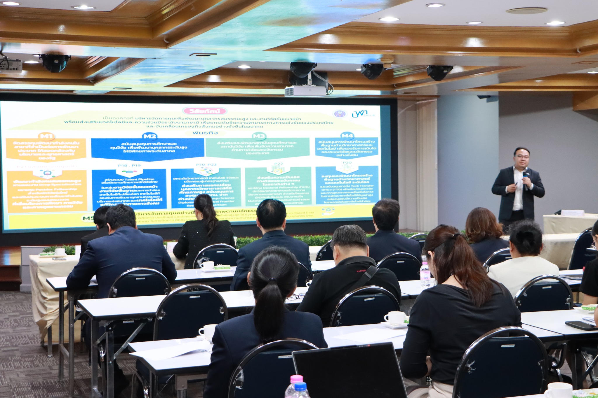 ดร.ณิรวัฒน์ฯ ผู้อำนวยการ บพค. ได้มีการบรรยายถึงโจทย์วิจัยและการกำหนดเกณฑ์การให้ทุนวิจัยของ บพค. เพื่อตอบเป้าหมายหรือผลสัมฤทธิ์ (Key Results: KRs) ของแผนงาน ผ่านการสนับสนุนตามพันธกิจของ บพค. 4 ด้าน ดังนี้