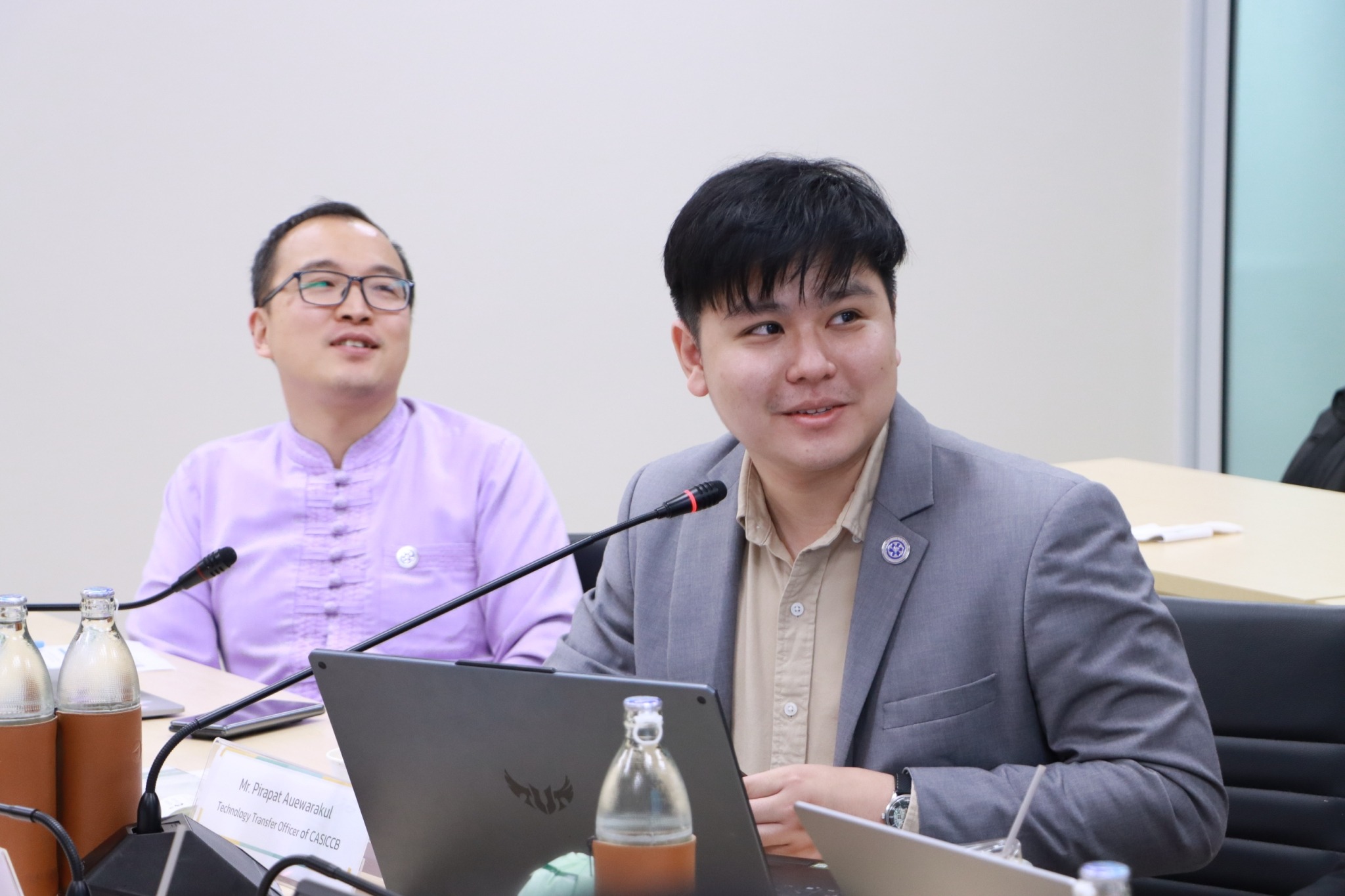 ด้าน Dr. Richard Wang และ Mr.Pirapat ได้นำเสนอภารกิจและบทบาทของ Chinese Academy of Sciences Innovation Cooperation Center Bangkok (CASICCB) ในฐานะหน่วยงานภายใต้ Chinese Academy of Sciences (CAS) ซึ่งเป็นองค์กรด้านวิทยาศาสตร์และเทคโนโลยีขนาดใหญ่ระดับโลก โดยทำหน้าที่เป็นกลไกสำคัญในการเชื่อมโยงความร่วมมือด้านการวิจัยและนวัตกรรมระหว่างประเทศจีนและประเทศไทย ทั้งในรูปแบบการสนับสนุนโครงการวิจัยร่วม การแลกเปลี่ยนนักวิจัย และการพัฒนาบุคลากรวิจัยด้านวิทยาศาสตร์และเทคโนโลยี นอกจากนี้ CASICCB ยังให้ความสำคัญกับการผลักดันงานวิจัยสู่การใช้ประโยชน์จริงผ่านความร่วมมือกับภาคอุตสาหกรรม และการสร้างแพลตฟอร์มเชื่อมโยงตลาดเทคโนโลยีระหว่างสองประเทศ โดยการนำเสนอครั้งนี้มุ่งเน้นเป็นพิเศษในประเด็น พลังงานทางเลือก (Alternative Energy) อาทิ เทคโนโลยีไฮโดรเจน พลังงานหมุนเวียน ระบบกักเก็บพลังงาน ตลอดจนการพัฒนาเชื้อเพลิงอากาศยานและเชื้อเพลิงทางทะเลแบบยั่งยืนจากชีวมวล ซึ่งสะท้อนถึงศักยภาพของความร่วมมือไทย–จีนในการสนับสนุนเป้าหมายการเปลี่ยนผ่านสู่เศรษฐกิจคาร์บอนต่ำและความมั่นคงด้านพลังงานในอนาคตอย่างเป็นรูปธรรม