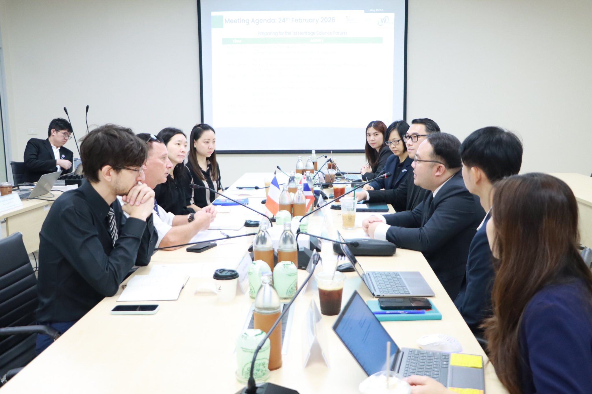 เมื่อวันที่ 24 กุมภาพันธ์ 2569 ดร.ณิรวัฒน์ ธรรมจักร์ ปฏิบัติหน้าที่ผู้อำนวยการหน่วยบริหารจัดการทุนด้านเทคโนโลยีและนวัตกรรมเพื่ออุตสาหกรรมแห่งอนาคต (บพค.) ภายใต้สำนักงานเร่งรัดการวิจัยและนวัตกรรมเพื่อเพิ่มความสามารถการแข่งขันและการพัฒนาพื้นที่ (องค์การมหาชน) (รวพ.) กระทรวงการอุดมศึกษา วิทยาศาสตร์ วิจัยและนวัตกรรม (อว.) พร้อมด้วย ดร.จิตติ มังคละศิริ ปฏิบัติหน้าที่รองผู้อำนวยการ บพค. และเจ้าหน้าที่ บพค. ให้การต้อนรับ Dr. Ludovic Andres, Attaché for Scientific and Higher Education Cooperation และคณะผู้แทนจากสถานเอกอัครราชทูตฝรั่งเศสประจำประเทศไทย เพื่อร่วมหารือแนวทางการจัดงาน The 1st Heritage Science Forum “The Starting Point: Applying Advanced Science to Preserve and Enhance Cultural Heritage” ซึ่งมีกำหนดจัดขึ้นในวันที่ 12-13 พฤษภาคม 2569 ณ กรุงเทพมหานคร และจังหวัดพระนครศรีอยุธยา โดยมีเป้าหมายเพื่อสร้างเครือข่ายความร่วมมือทางวิชาการระหว่างนักวิจัยไทยและฝรั่งเศส ในสาขา“วิทยาศาสตร์มรดก” (Heritage Science) ซึ่งเป็นการบูรณาการระหว่างวิทยาศาสตร์ขั้นสูง ประวัติศาสตร์ และศิลปะ เข้าด้วยกันเพื่อพัฒนาความเข้าใจเชิงลึกและระบบการจัดการมรดกวัฒนธรรมอย่างมีประสิทธิภาพ