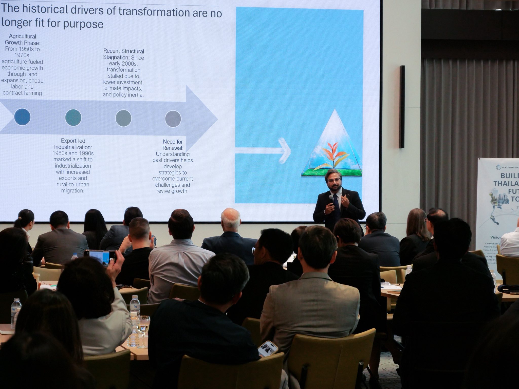 การประชุมดังกล่าวจัดขึ้นเพื่อเปิดเวทีหารือเชิงนโยบายและแลกเปลี่ยนมุมมองเกี่ยวกับบทบาทของภาค Food and Agribusiness ต่อการขับเคลื่อนเศรษฐกิจไทยในระยะยาว โดยได้รับเกียรติจาก Mr. Ashesh Prasann นักเศรษฐศาสตร์การเกษตรอาวุโส จาก World Bank มาบรรยายในหัวข้อ “Food and Agribusiness as Industry of the Future in Building Thailand’s Future Today” นำเสนอศักยภาพของระบบอาหารและการเกษตร (Agrifood System) ในฐานะอุตสาหกรรมแห่งอนาคต และแนวทางยกระดับอุตสาหกรรมอาหารและการเกษตรไทยสู่การสร้างมูลค่าเพิ่ม การพัฒนานวัตกรรม และความมั่นคงด้านอาหารอย่างยั่งยืน