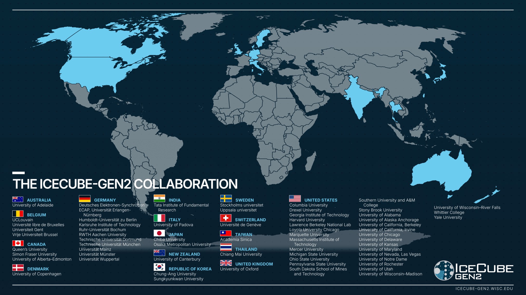 IceCube เป็นหนึ่งในโครงการวิจัยระดับโลกด้านฟิสิกส์อนุภาคพลังงานสูงและดาราศาสตร์อนุภาค โดยโครงการพัฒนารุ่นถัดไปคือ IceCube-Gen2 ได้รับการบรรจุอยู่ในแผนยุทธศาสตร์ Particle Physics Project Prioritization Panel (P5) ของสหรัฐอเมริกา ซึ่งเป็นกระบวนการกำหนดลำดับความสำคัญของโครงการฟิสิกส์อนุภาคขนาดใหญ่สำหรับทศวรรษถัดไป นอกจากนี้ IceCube-Gen2 ยังเป็นหนึ่งในโครงการที่ได้รับการนำเสนอและพิจารณาในกระบวนการ Snowmass Community Planning Exercise ซึ่งเป็นเวทีวางแผนเชิงวิทยาศาสตร์ของชุมชนฟิสิกส์อนุภาคที่จัดขึ้นเป็นระยะเพื่อกำหนดทิศทางการพัฒนางานวิจัยในอนาคต