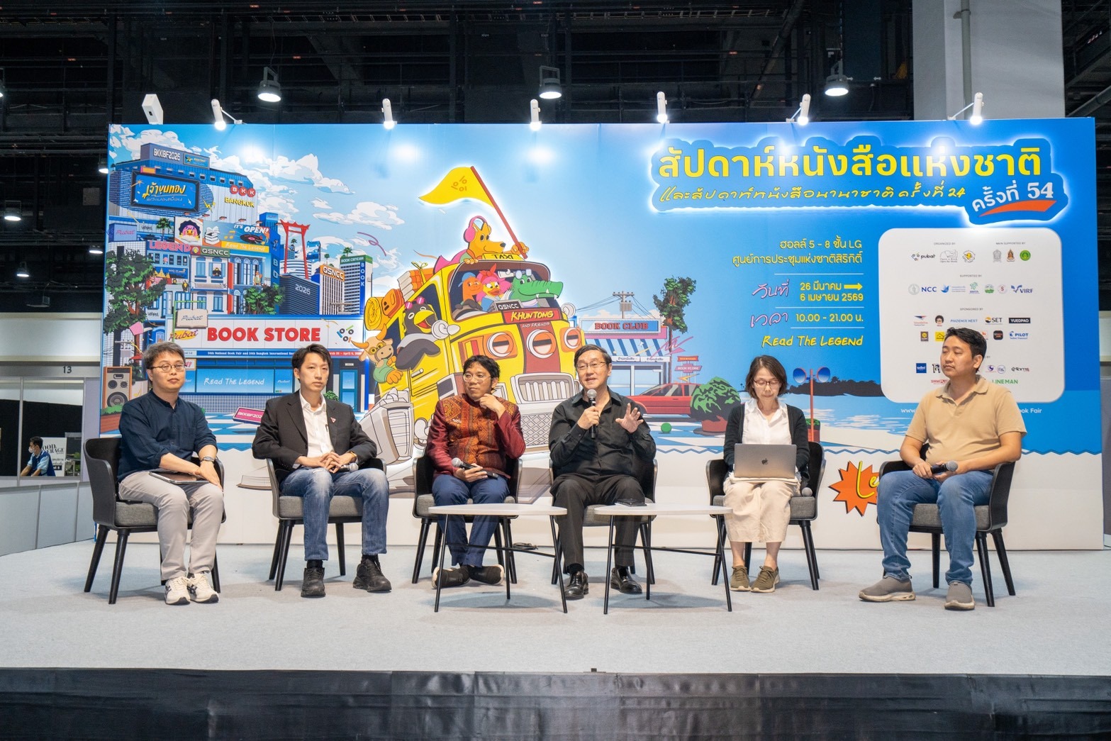 เวทีเสวนาครั้งนี้ได้รับเกียรติจากวิทยากรผู้ทรงคุณวุฒิหลากหลายภาคส่วนที่มาร่วมแลกเปลี่ยนองค์ความรู้และประสบการณ์ในอุตสาหกรรมหนังสือครอบคลุมทั้งในมุมมองด้านนโยบาย การสร้างสรรค์เนื้อหา การจัดพิมพ์ และการจัดจำหน่าย ได้แก่ นายแพทย์สุรพงษ์ สืบวงศ์ลี อดีตประธานคณะกรรมการพัฒนาซอฟต์พาวเวอร์แห่งชาติ คุณณพัฎน์ จิตตภินันท์กัณตา สมาชิกสภาผู้แทนราษฎร กรุงเทพมหานคร พรรคประชาชน คุณธีรภัทร เจริญสุข เลขาธิการสมาคมผู้จัดพิมพ์และผู้จำหน่ายหนังสือแห่งประเทศไทย (PUBAT) คุณชยฤทธิ์ อินทวิศาลกุล จากสำนักพิมพ์ภาพพิมพ์ ศ.ดร.ปิ่นแก้ว เหลืองอร่ามศรี มหาวิทยาลัยเชียงใหม่ โดยมี รศ.ดร.ชัยพงษ์ สำเนียง มหาวิทยาลัยนเรศวร เป็นผู้ดำเนินรายการ