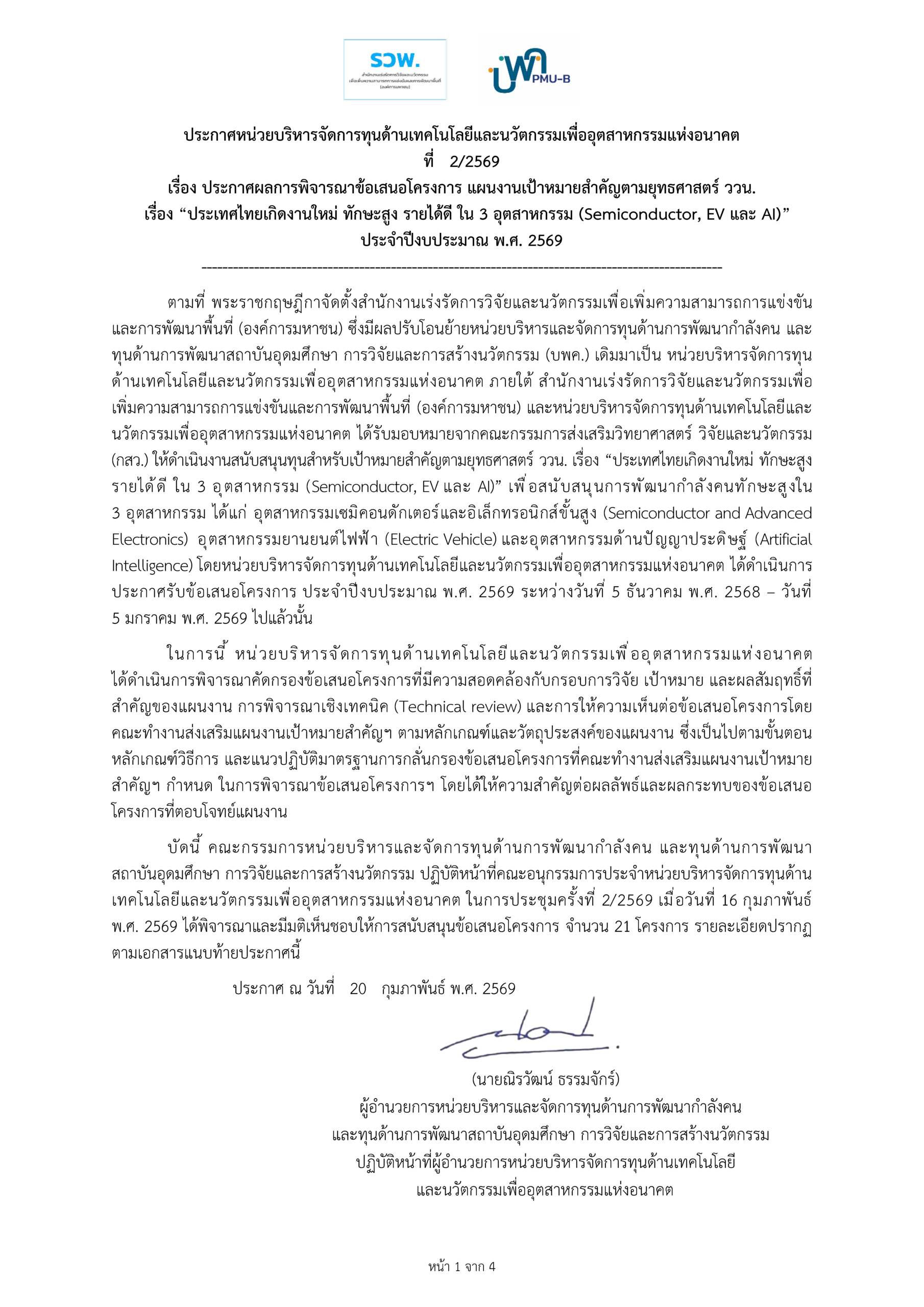 Program Management Unit for Technology and Innovation for Future Industries (PMU-B) : Brainpower for Future Industries